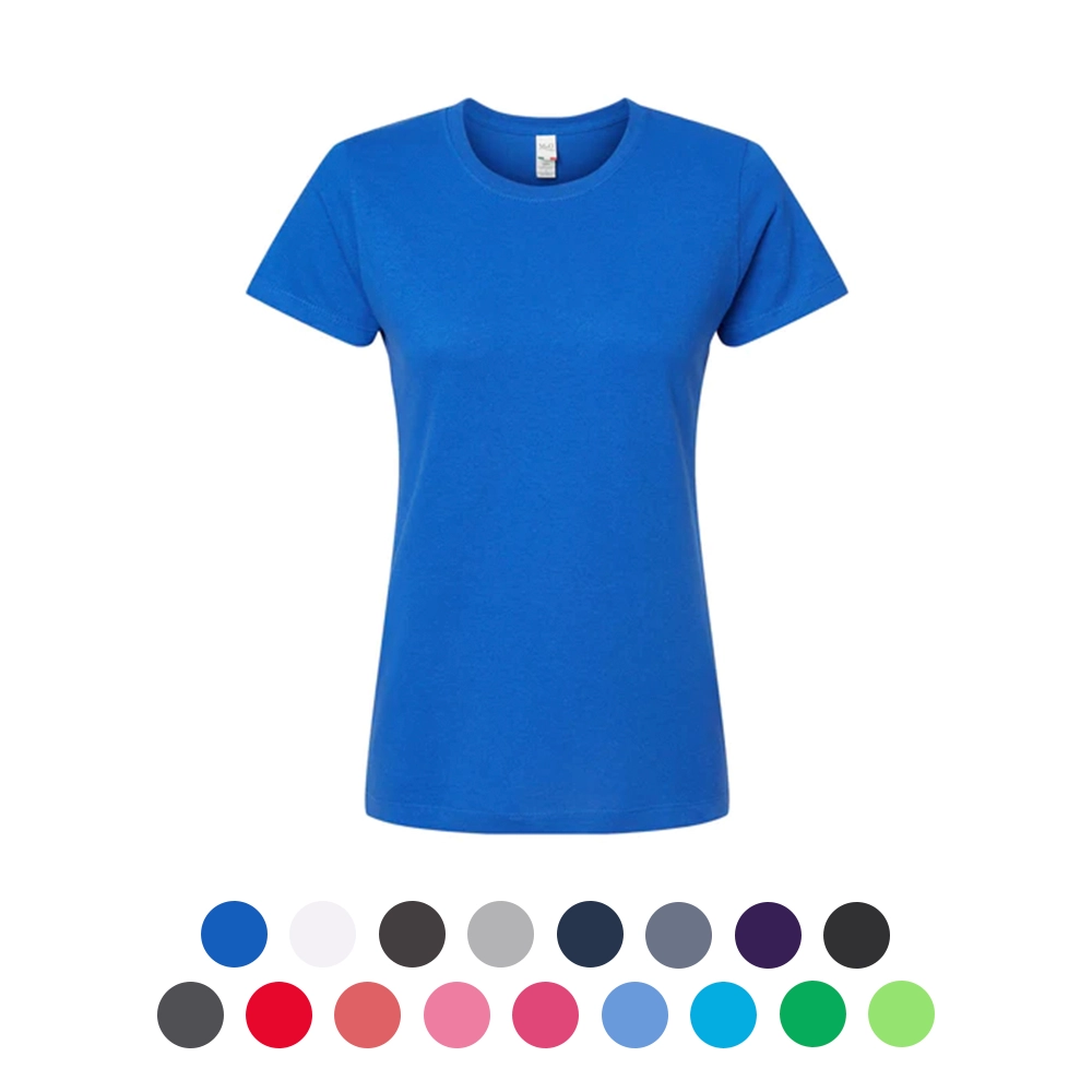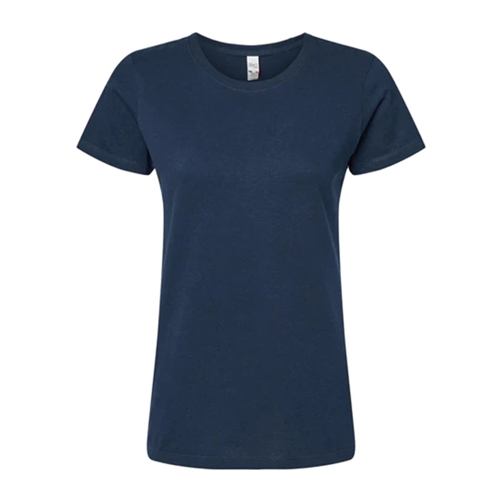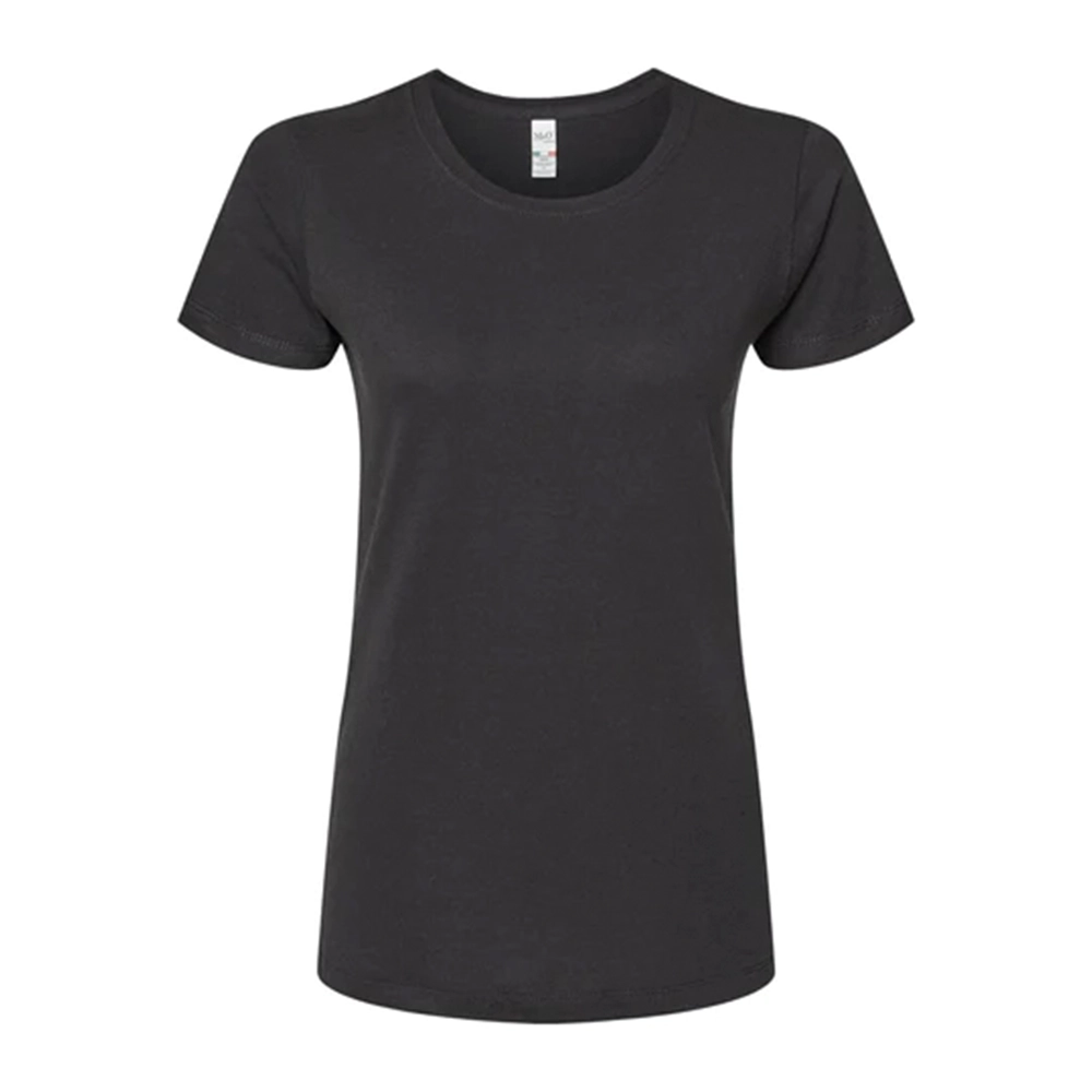 Playera dama corte silueta con costura en costados, cuello redondo en cardigan con doble pespunte, doble pespunte en mangas y bajos.