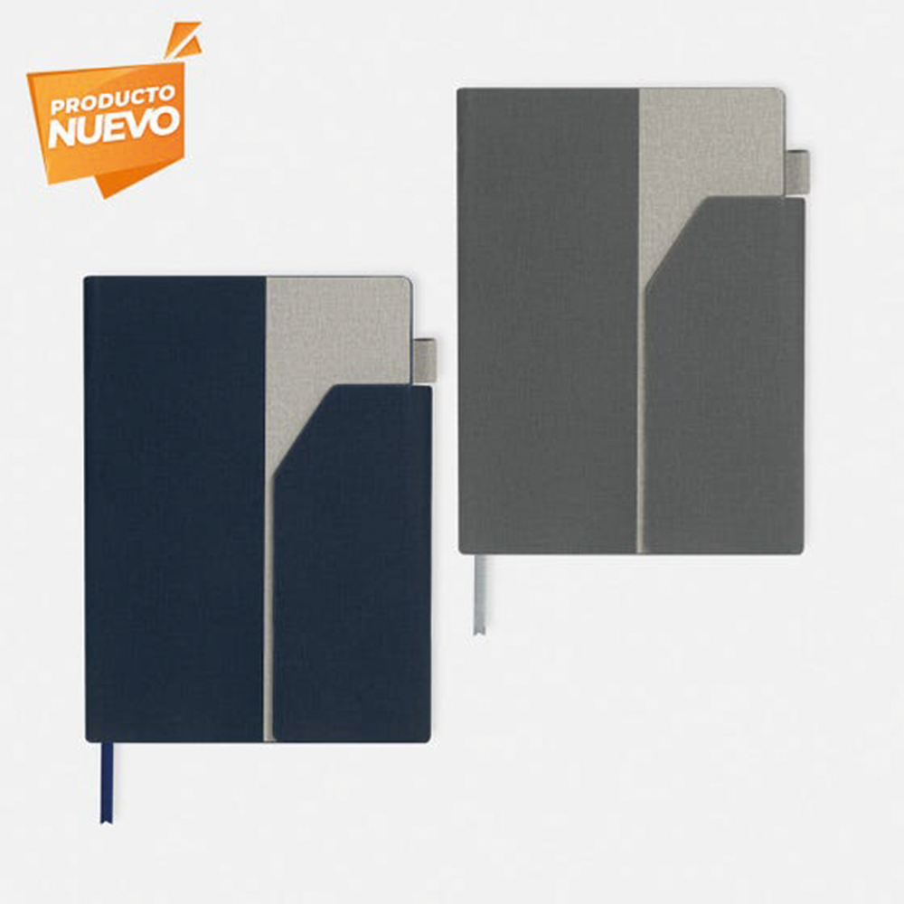 Libreta tamaño A6 con 80 hojas rayadas (160 páginas). Incluye separador de hojas, elástico vertical y elástico para sujetar el bolígrafo.