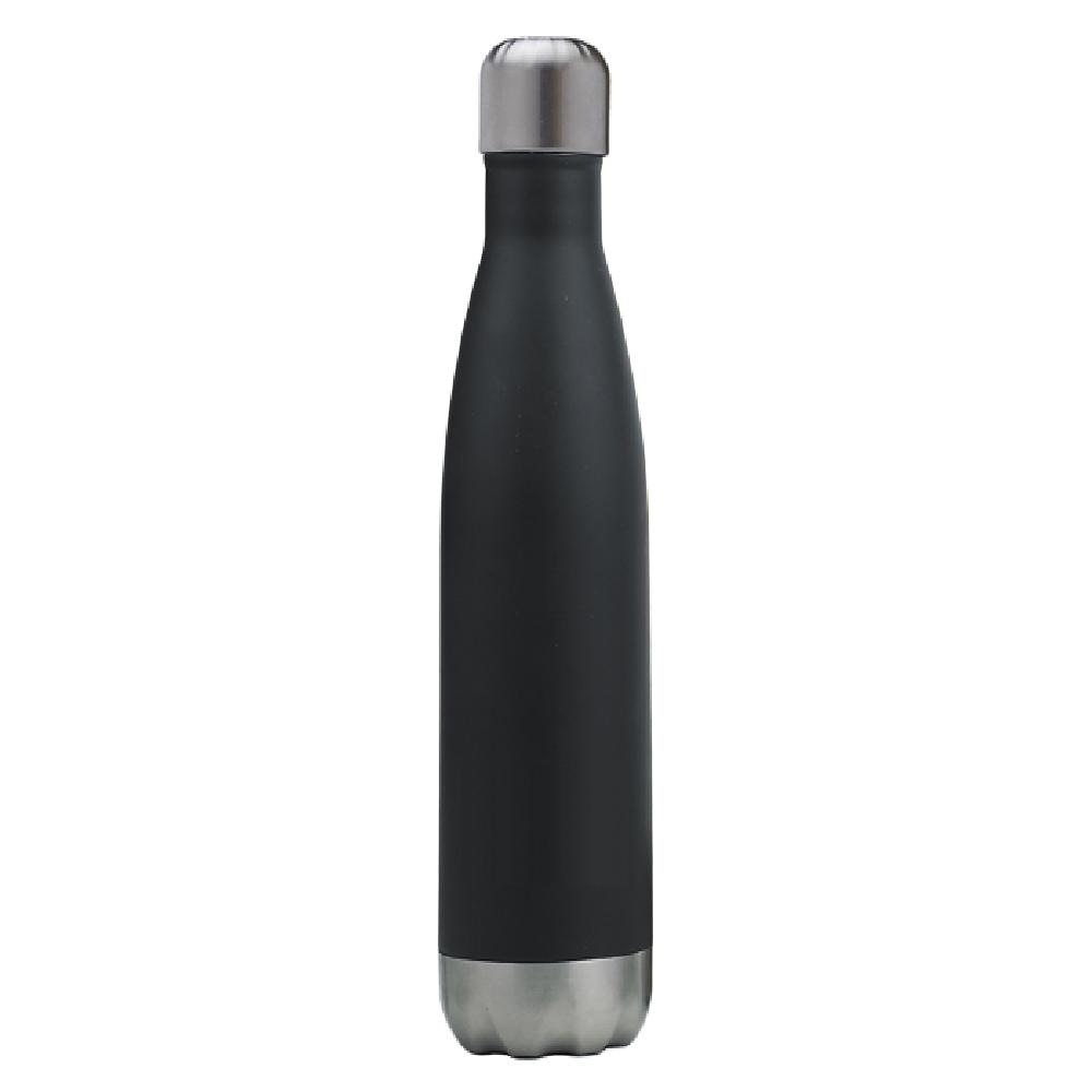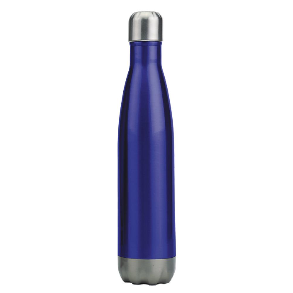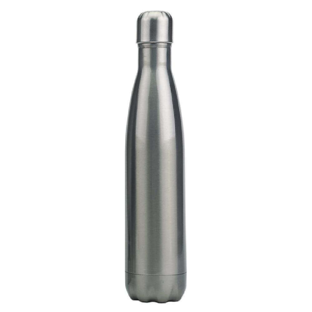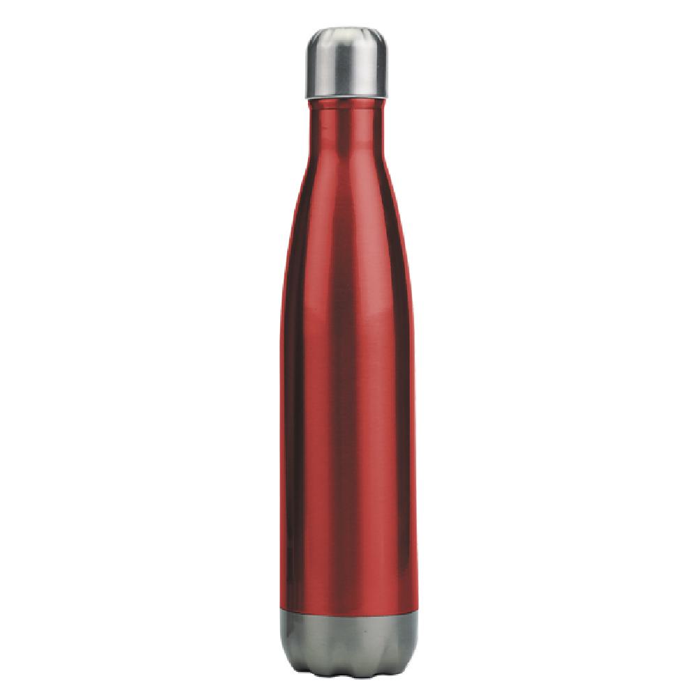 Novedoso termo de acero inoxidable en forma de botella que conserva el frío por 24 horas y el calor por 12 horas. Cuenta con doble pared insulada al vacío y capa interior de cobre. Con tapón de sellado hermético para evitar cualquier derrame. CAP. 480 ml.
