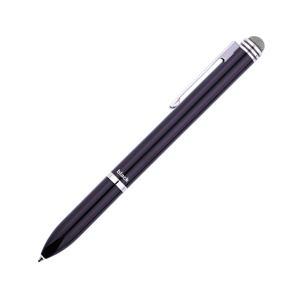 Bolígrafo metálico con acabado brillante y elegante diseño. Punta touch de malla metálica firmemente tejida para un rendimiento superior y preciso en dispositivos táctiles. Mecanismo twist, que al girar indica el color de tinta el cual puede ser azul o negro