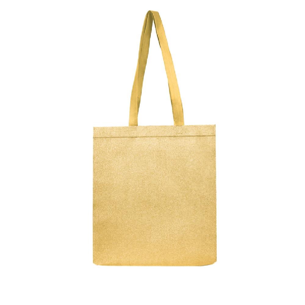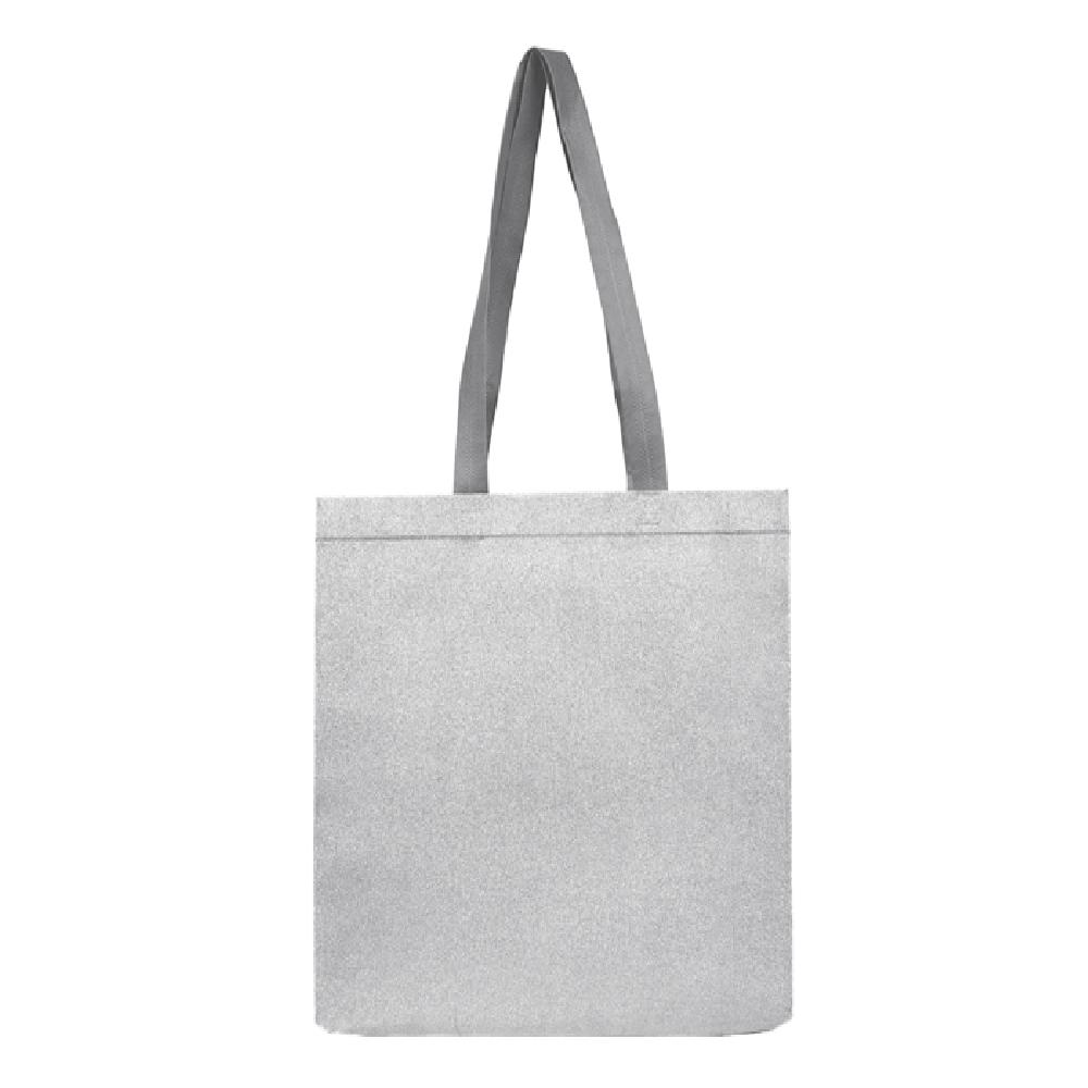 Bolsa ecológica termosellada con asas y diseño brillante. Peso máximo de carga de 10 kgs.