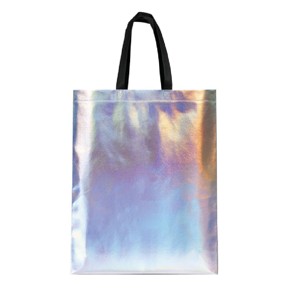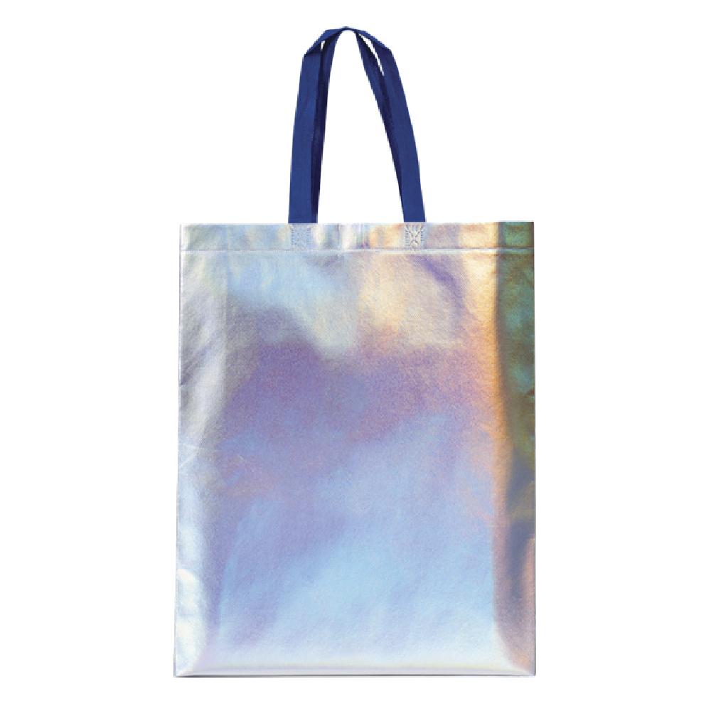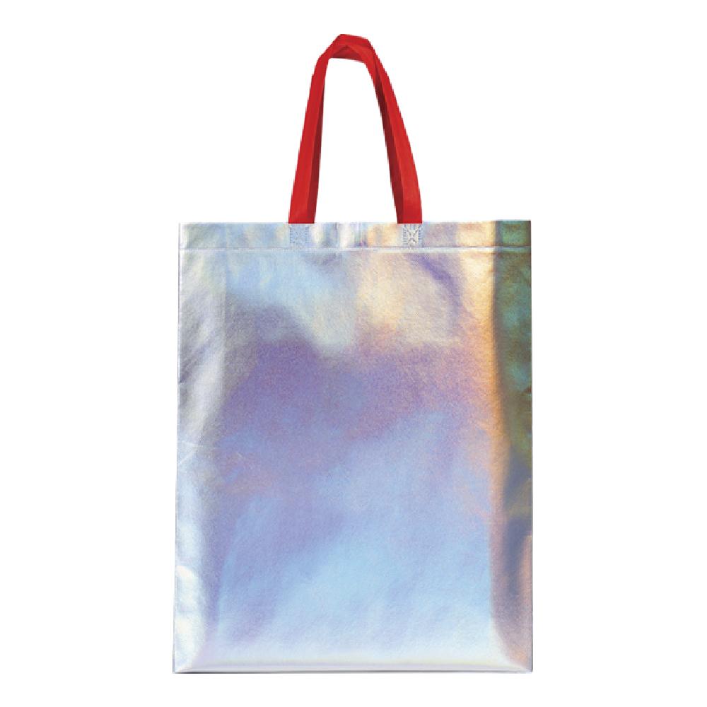 Bolsa tornasol de Non Woven de 100 grs. termosellada, con fuelle y asas de color.