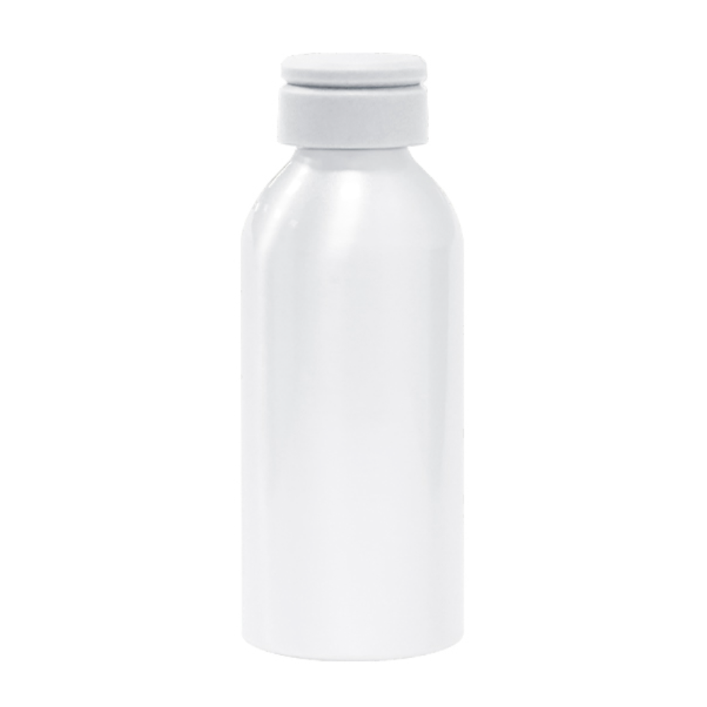 Cilindro de Aluminio con acabado metálico brillante con glitter, cuenta con práctica tapa de plástico con cierre de rosca y anillo abatible, que sirve como asa para su fácil transportación. CAP. 600 ml. (20 OZ).