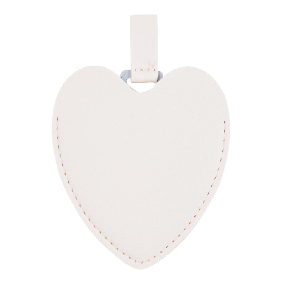 Espejo de acero inoxidable con cintillo y funda de poliuretano en forma de corazón.