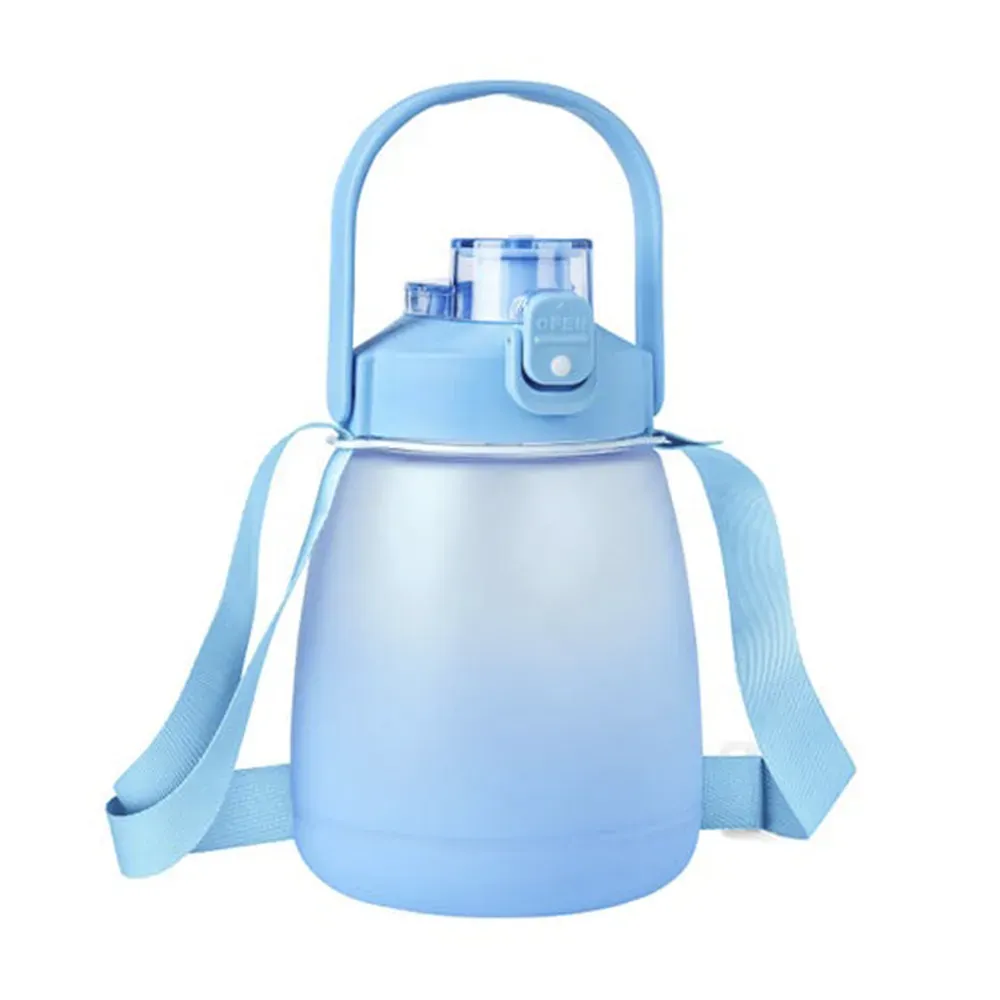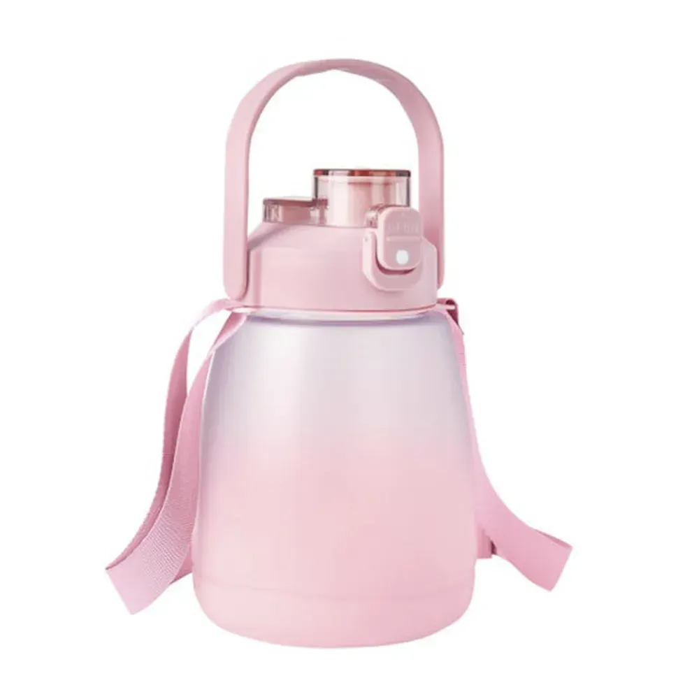 Tapa de plástico con cierre de rosca y boquilla, sobretapa push con botón de seguridad y asa plegable. Incluye asa de poliéster para transportarlo fácilmente. Cuerpo con terminado rubber que lo hace suave al tacto. Incluye indicador de mililitros para motivar y controlar tus hábitos de hidratación. Incluye popote y caja individual.