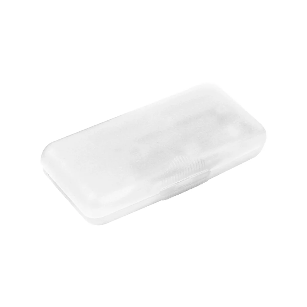 Set de manicura en estuche de plástico con 4 piezas (cortaúñas, empujador de cutículas, pinzas para cutículas y tijeras). Ideal para traer en la bolsa.