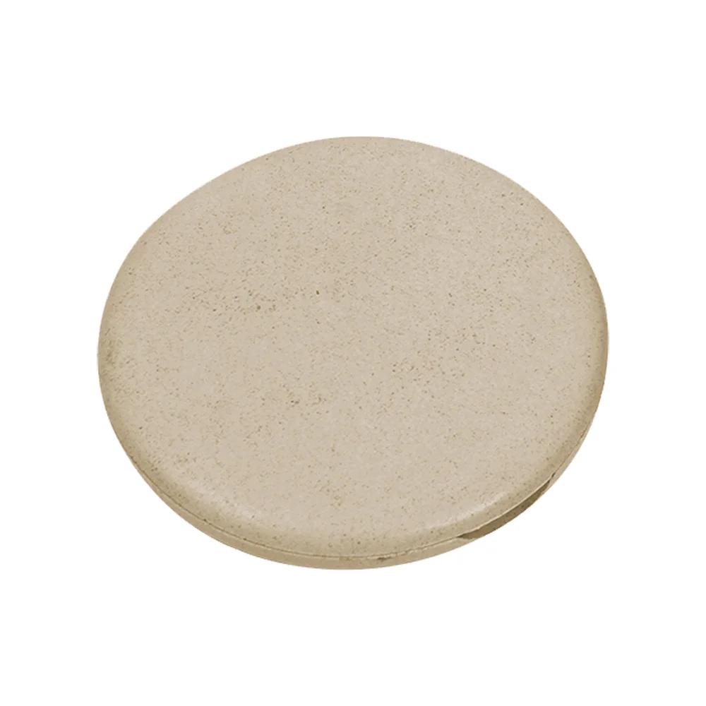 Espejo circular fabricado en fibra de trigo y plástico PP. Gracias a su tamaño, es ideal para llevarlo contigo todos los días.