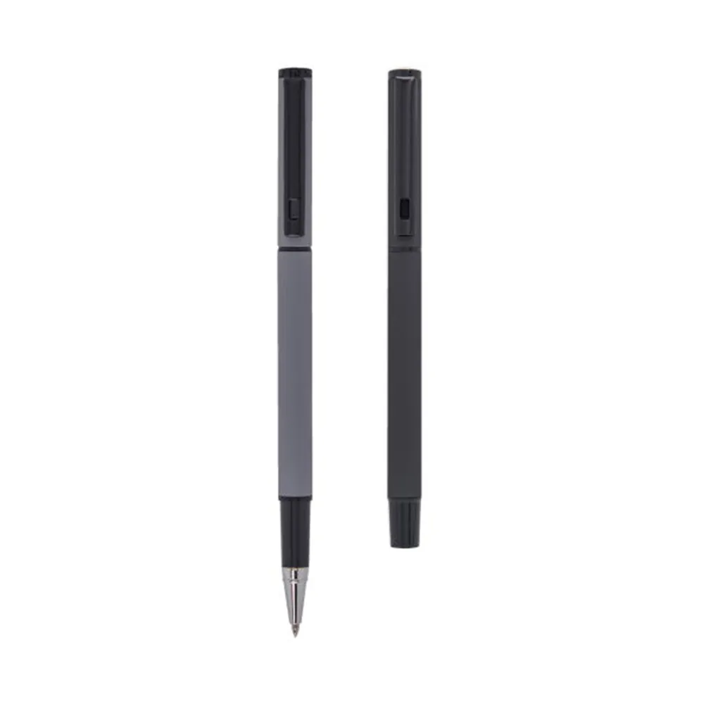 Bolígrafo metálico de aluminio con accesorios en color negro y tinta de escritura negra