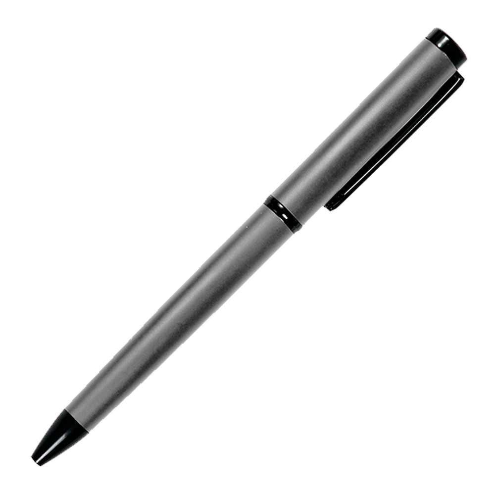 Bolígrafo twist tipo barrel de acero inoxidable, clip de acero y tinta negra alemana, rinde hasta 800 mts