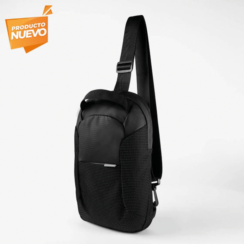 Mochila de 2 compartimentos, 1 compartimento principal con porta laptop, 1 compartimento frontal, tirantes acolchados y asa superior.