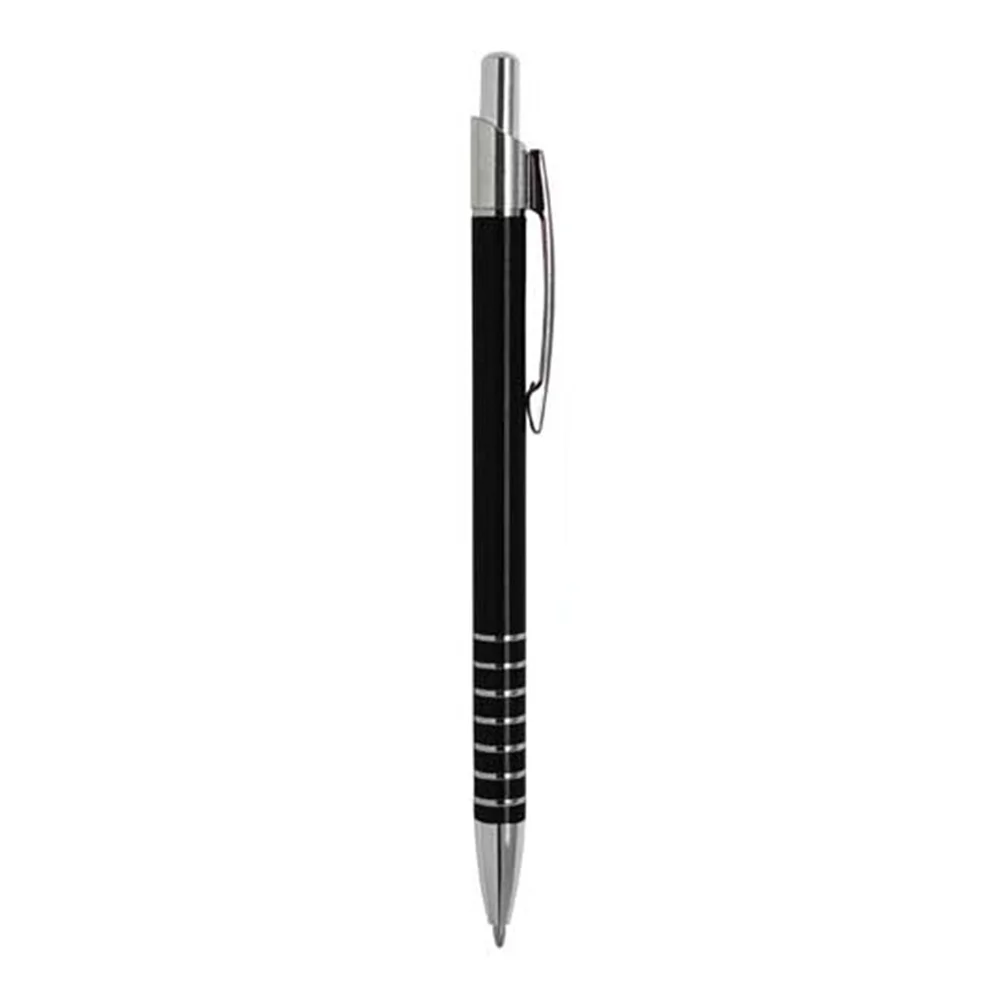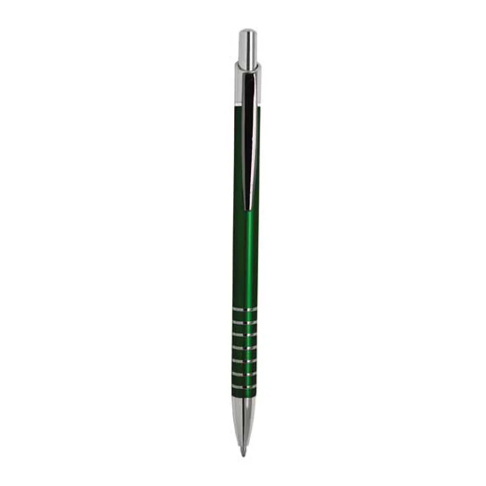 Bolígrafo de aluminio y clip metálico.
