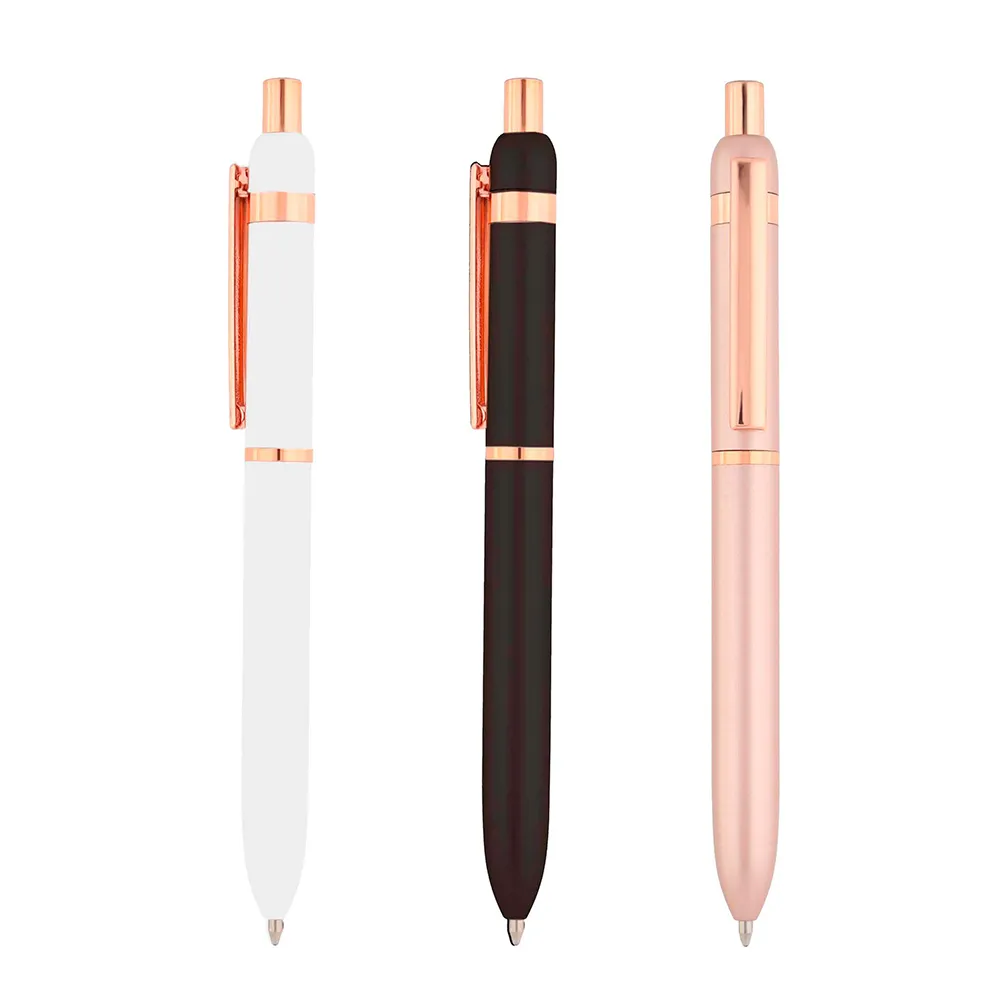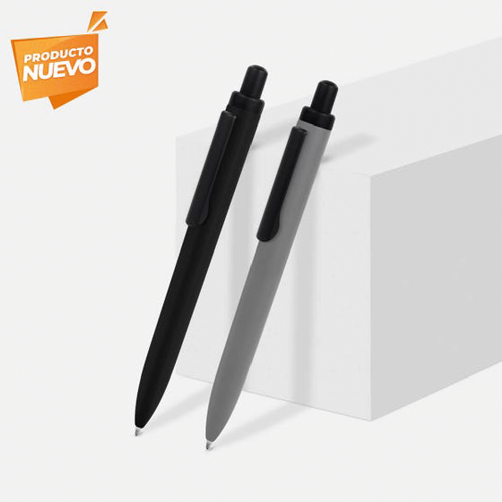 Bolígrafo retráctil. Cuerpo metálico en diferentes colores acabado mate. Clip metálico y puntera plástica color gris acabado mate. Pulsador de bambú. Tinta negra.