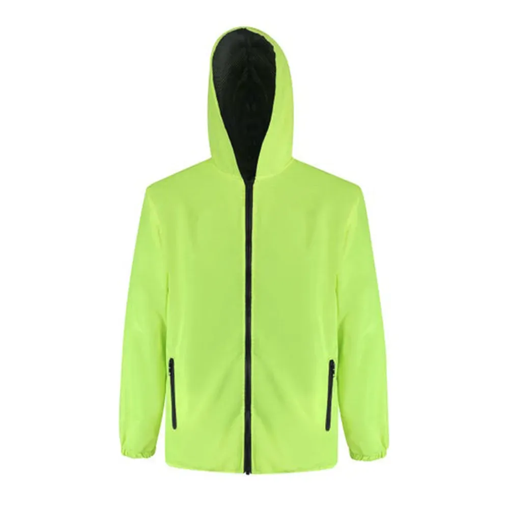 Chamarra deportiva con dos bolsillos frontales, gorro y elásticos en el área de las muñecas para un mejor ajuste. Forro interno hecho con material transpirable y cómodo. Destacan los tonos fluorescentes que agregan un aspecto moderno a su diseño.