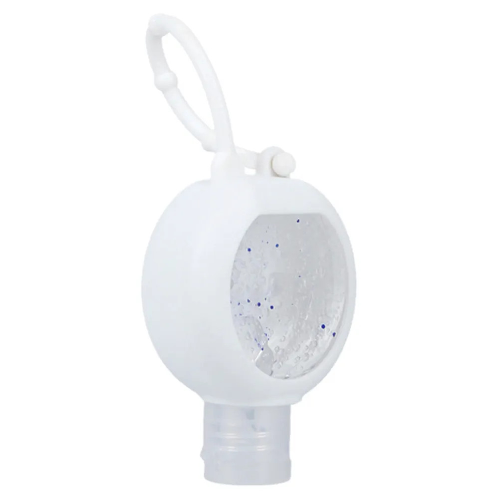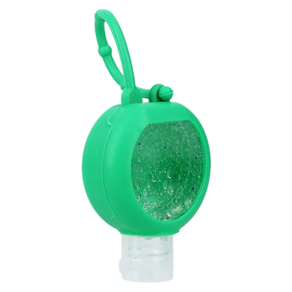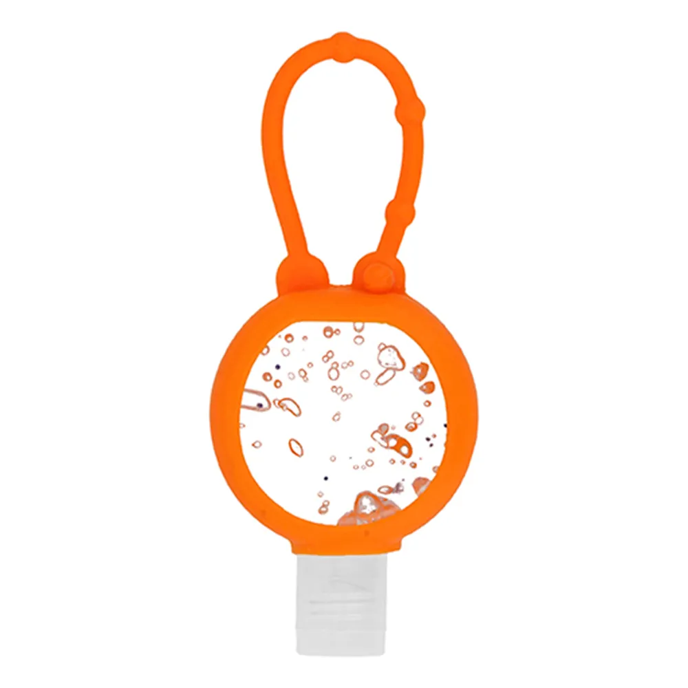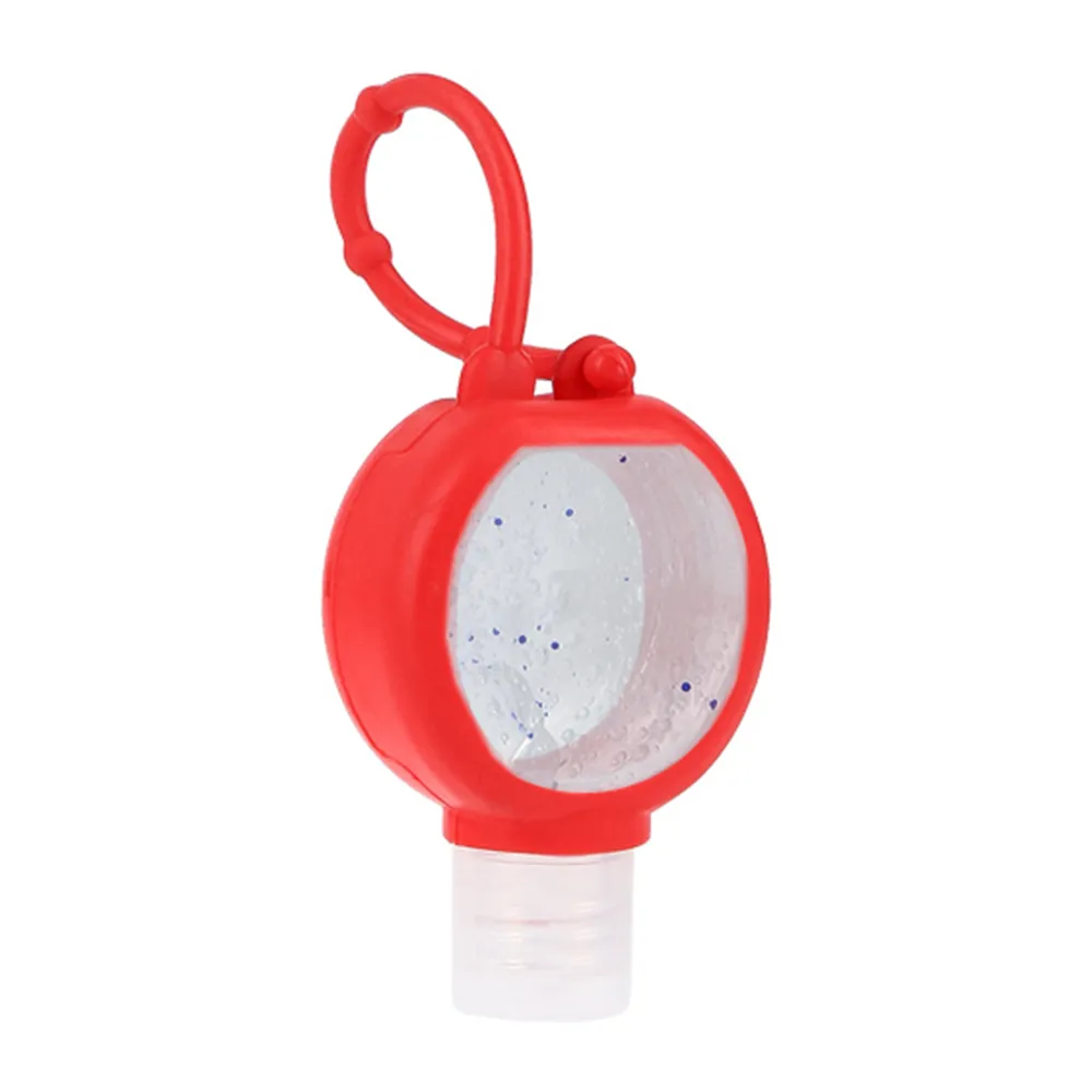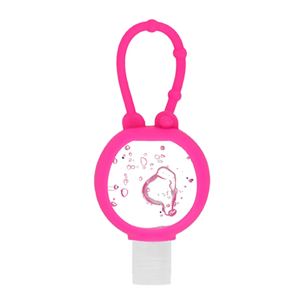 Gel antibacterial en botella de plástico con funda de silicón. Porcentaje de alcohol: 68 %.