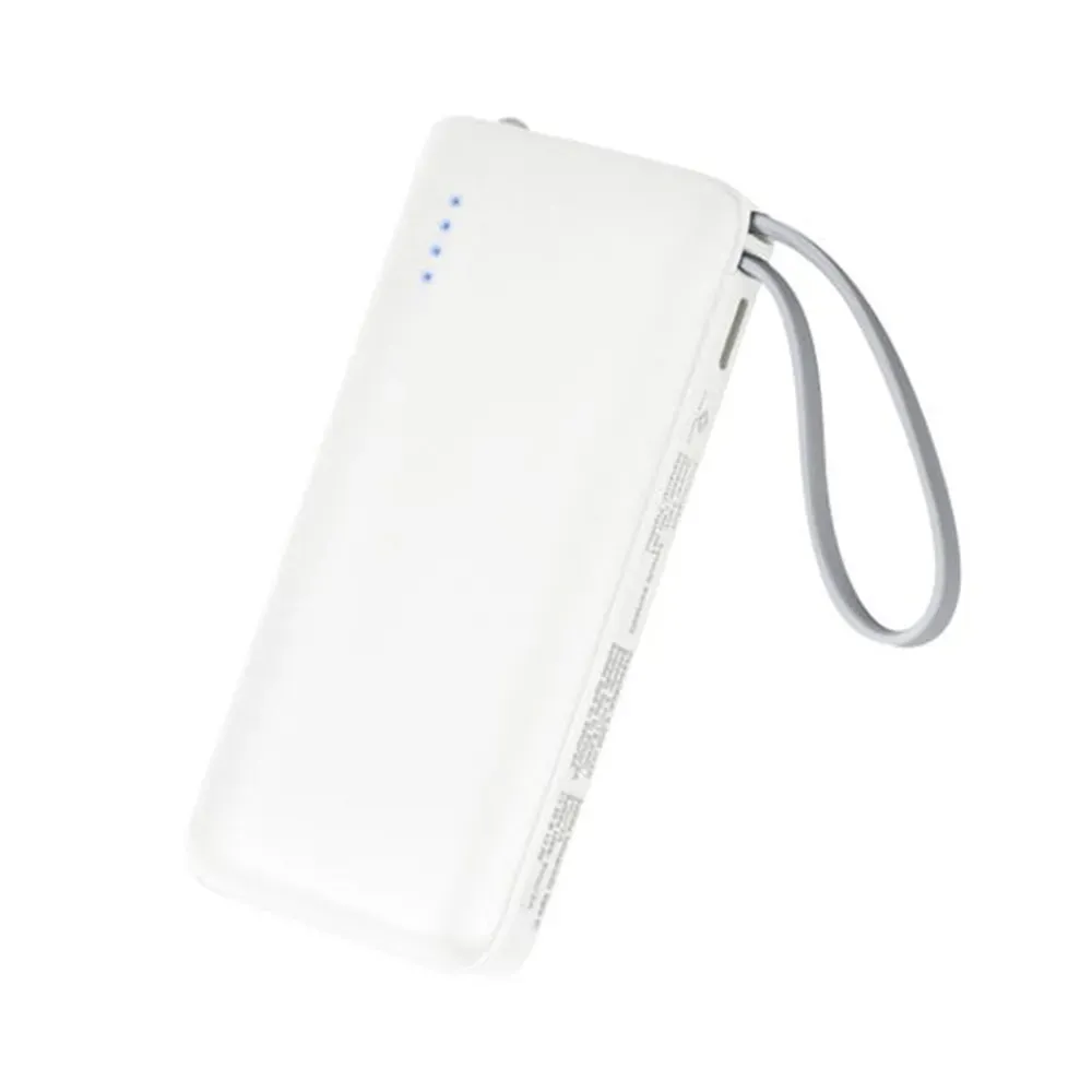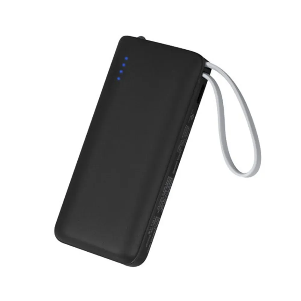 Batería auxiliar para smartphone, capacidad 5,000 mAh. Contiene 1 puerto de entrada tipo C para carga de la batería y 1 puerto de salida USB para carga de dispositivos. Adicional 1 cable integrado tipo C. Incluye lámpara con luz LED, display indicador de carga, cable con conector tipo C y caja individual.