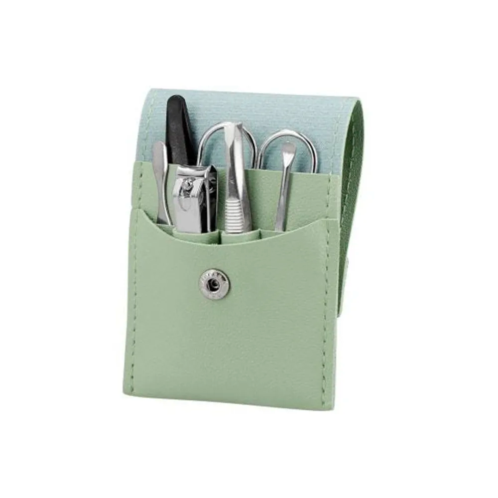 Set de manicure. Cuenta con sobre de curpiel con botón metálico. Incluye 6 piezas para un manicure básico: cortaúñas, tijeras curva para uñas, lima de uñas, empujador de cutícula, limpia uñas y pinza para cejas.