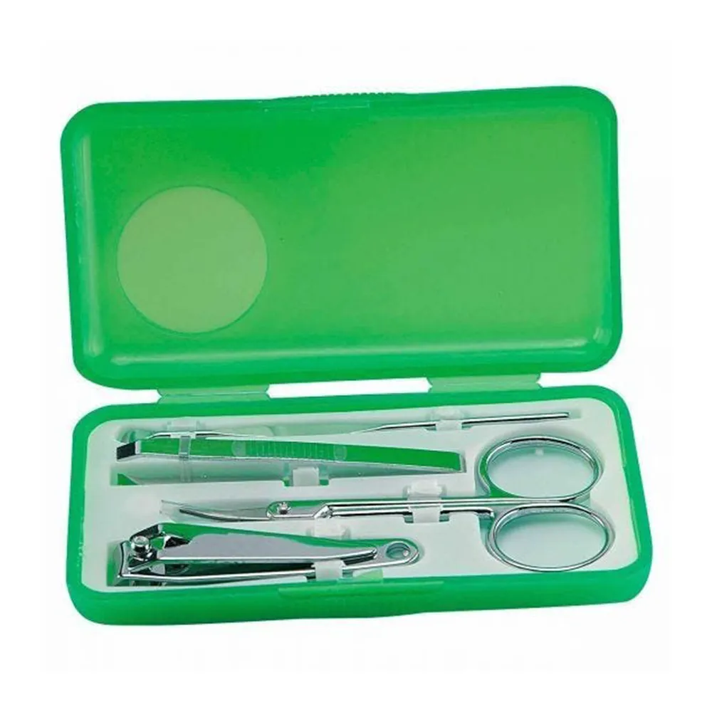 Set con 1 tijeras, 1 pinza para cejas, 1 corta uñas y 1 retira cutícula.