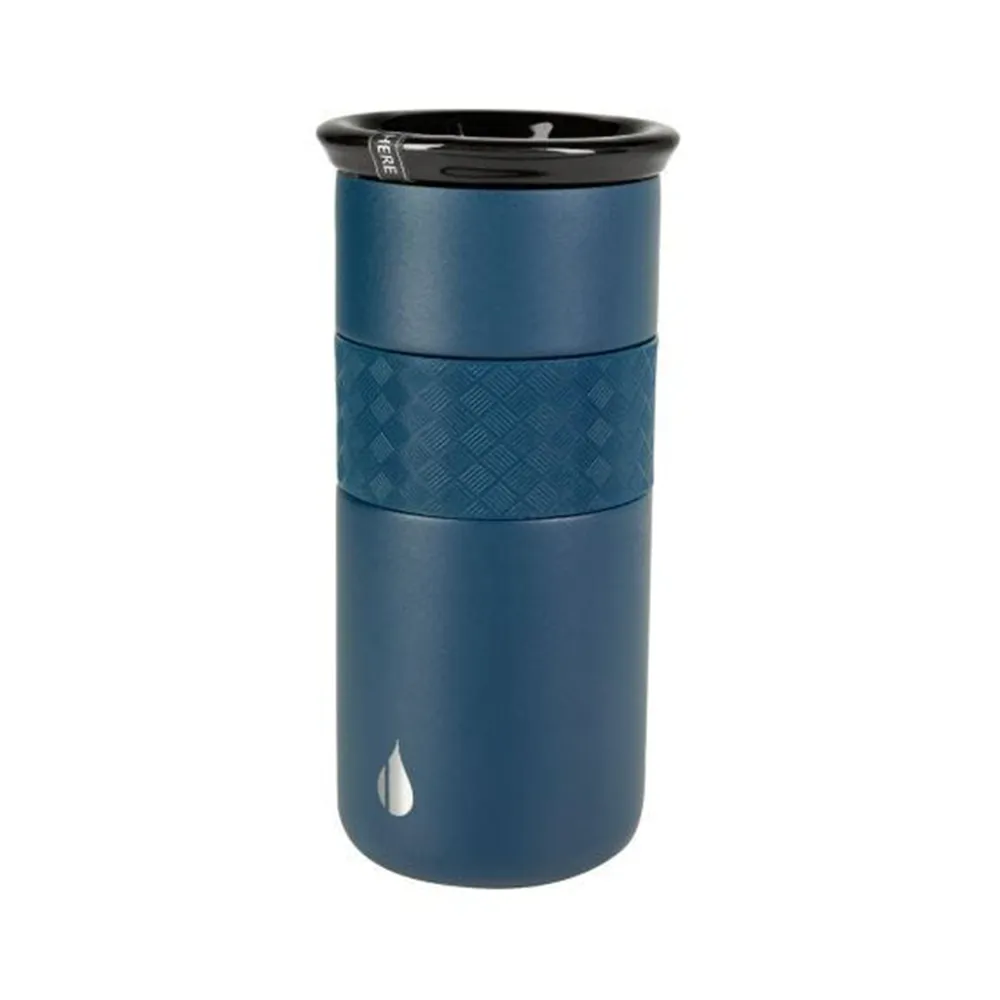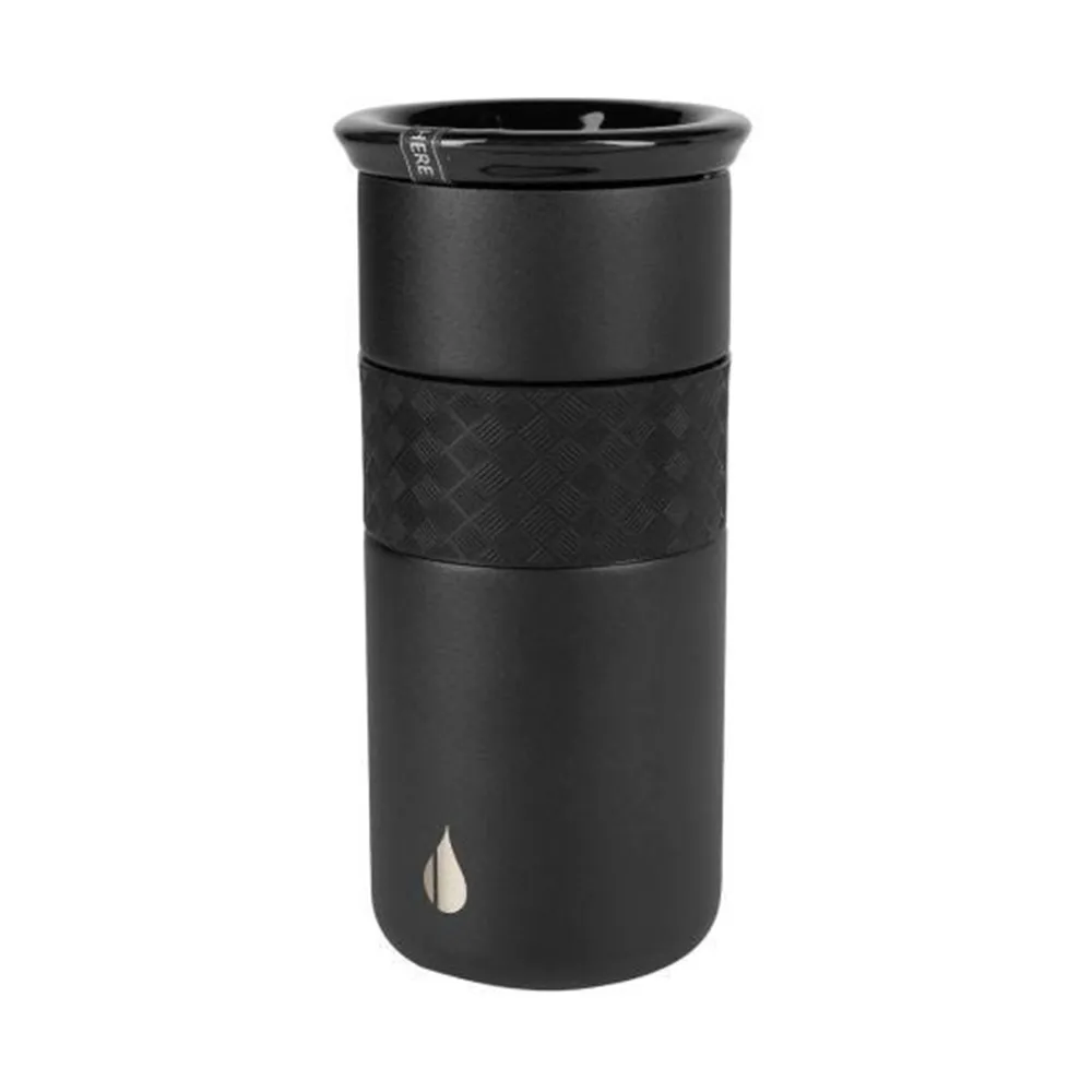 Tecnología TrueBarrier que usa aislamiento de triple pared. Doble pared de acero inoxidable y una capa de revestimiento de cobre. Cerrado al vacío. Material BPA free. Tapa de cerámica con tapón de seguridad, su forma evita derrames y quemaduras al tomar. Banda de silicón texturizada antiderrapante. Compatible con portavasos. Base antiderrapante. Mantiene temperatura caliente 6 hrs y fría 18 hrs aproximadamente. Incluye caja individual.