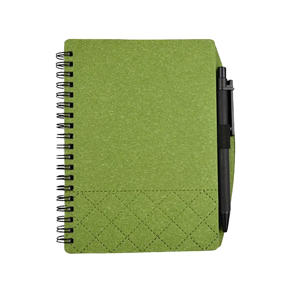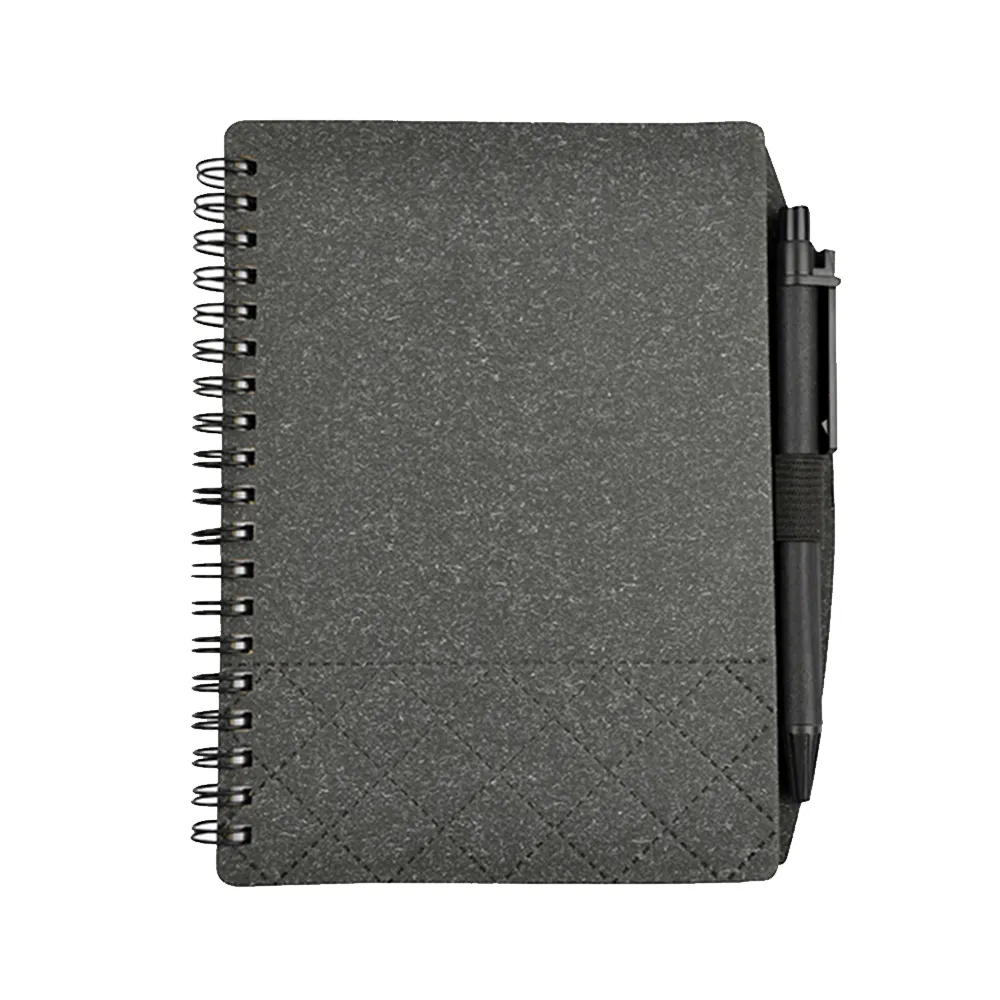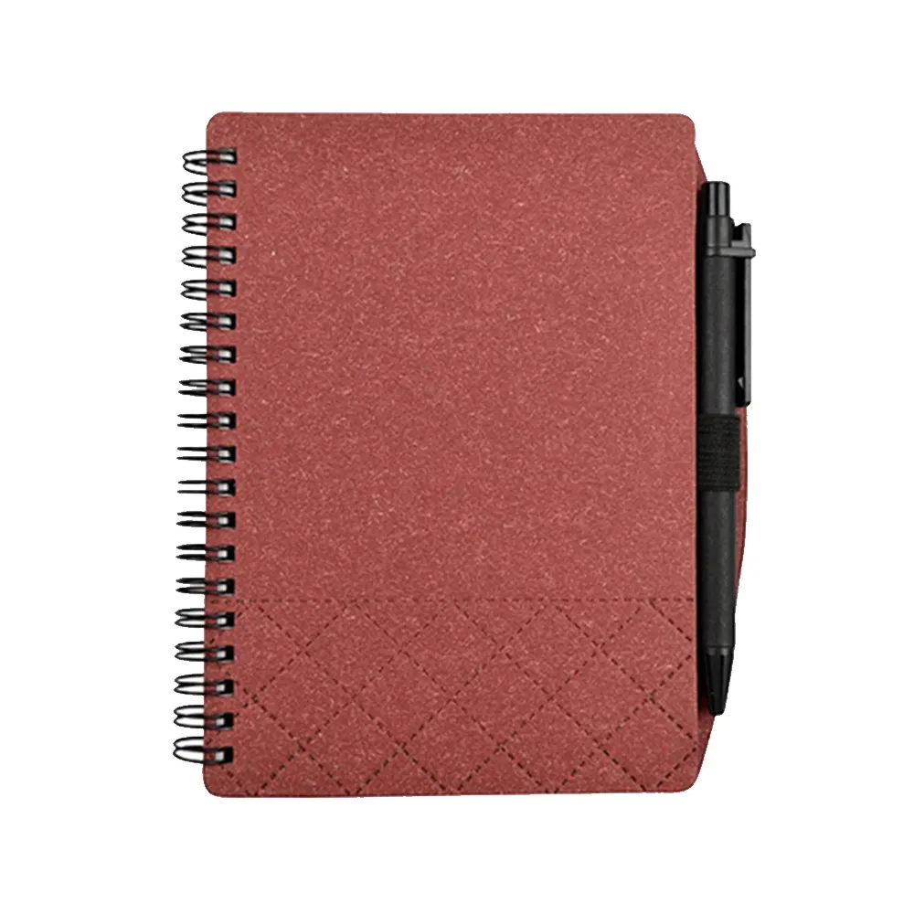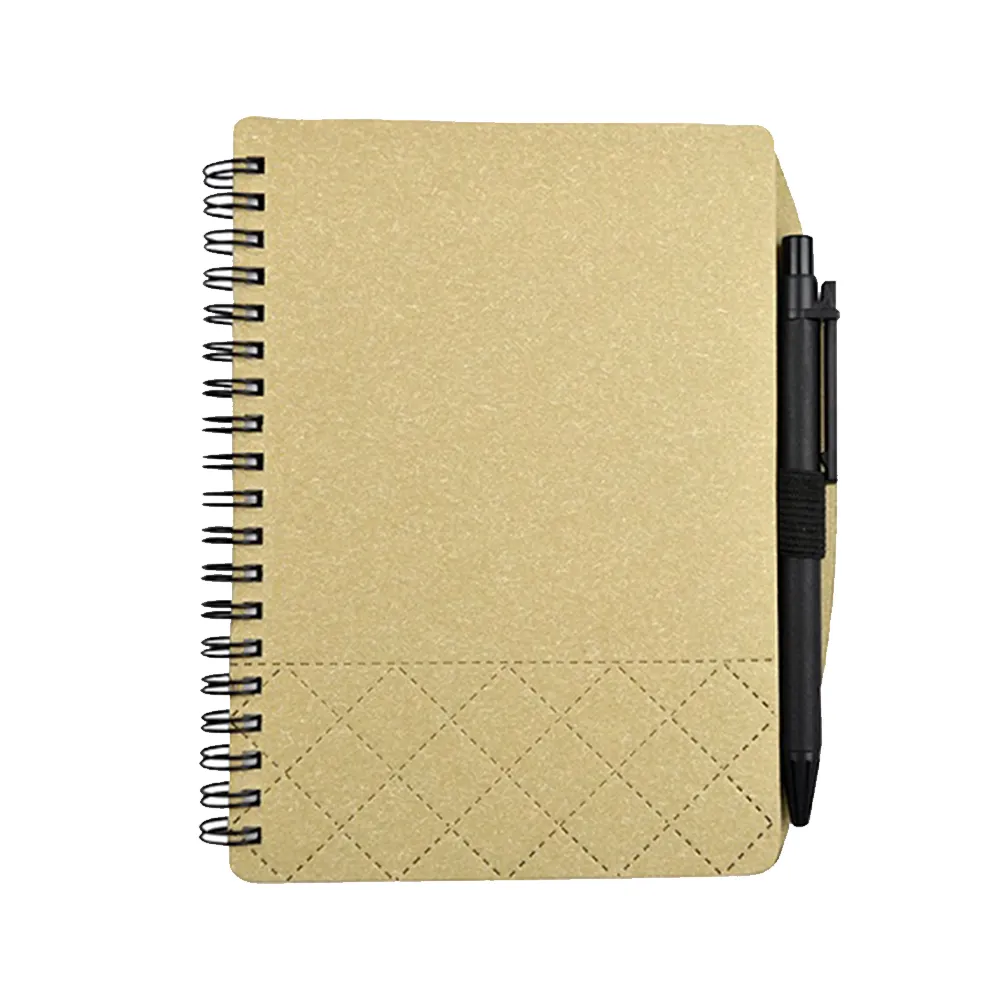 Diseño cuadricular en la carátula. Aprox. 80 hojas rayadas. Incluye bolígrafo.