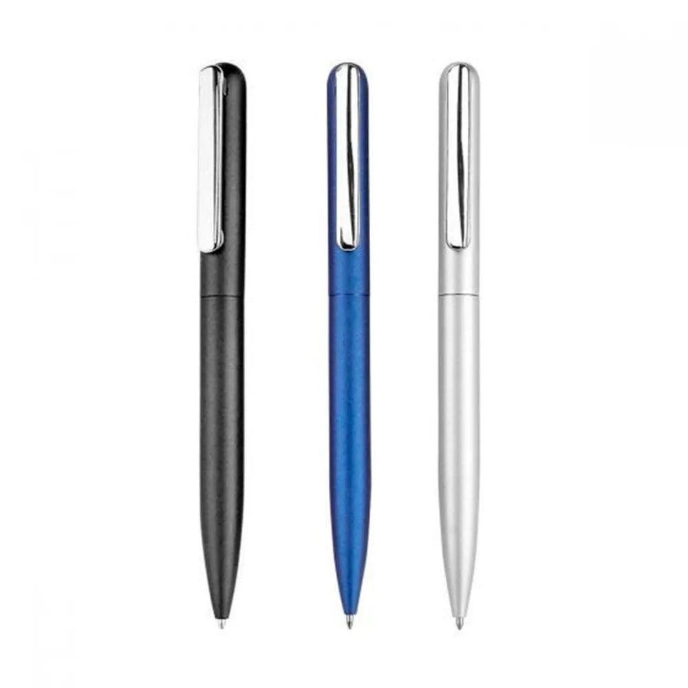 Bolígrafo de aluminio con clip y mecanismo retráctil.