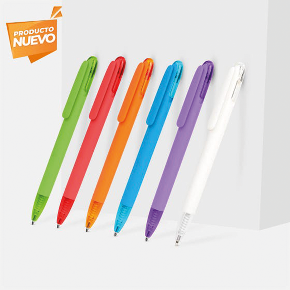 Bolígrafo de plástico con tinta de gel, tapa sólida y clip de plástico.