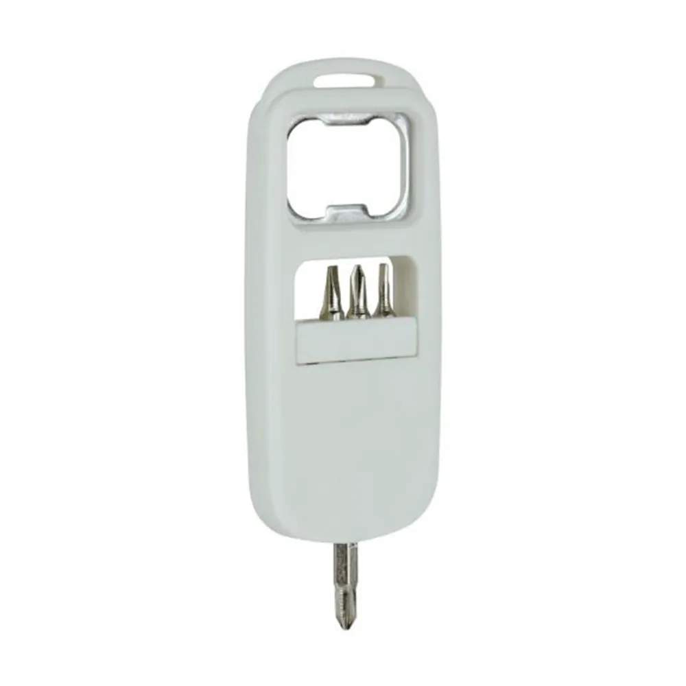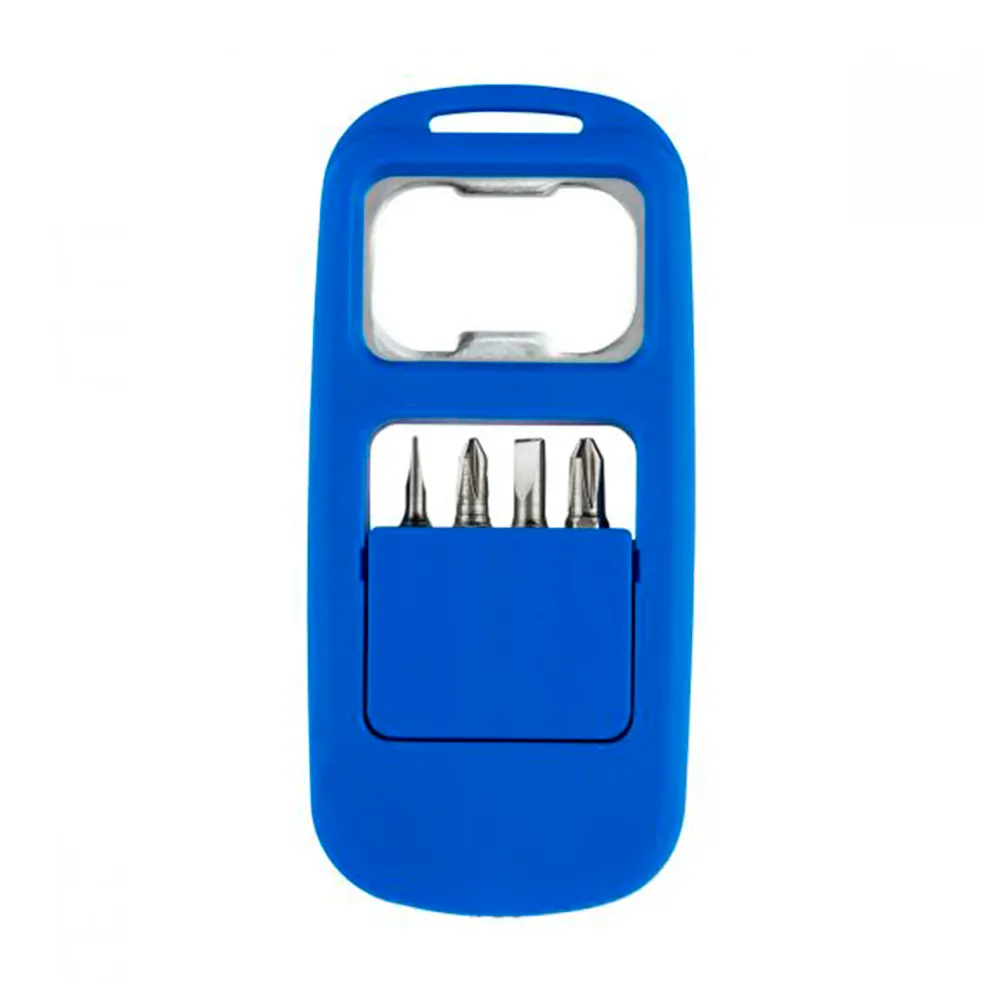 Incluye 4 puntas de desarmador y destapador.