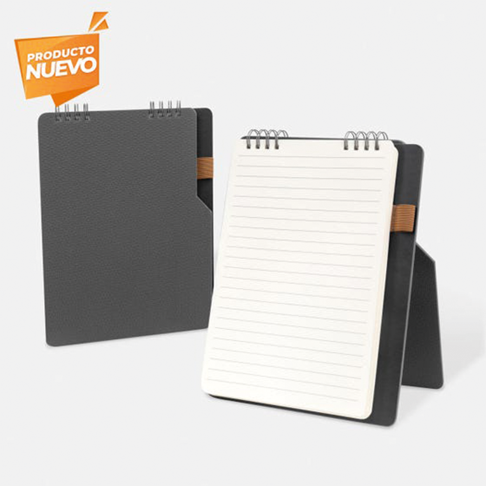 Libreta con 80 hojas a raya. Cubierta rígida con dos tipos de textura: una con diseño en termograbado y otra lisa. Incluye elástico para bolígrafo y separador de hojas. Bolígrafo no incluido.