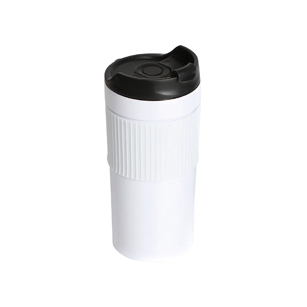 Termo de doble pared de acero inoxidable con manga de silicon, prensa francesa de acero inoxidable, tapa hermética anti derrame con cubierta de seguridad, fabricado en materiales de grado alimenticio, mantiene bebidas calientes, no usar en microondas. Capacidad de 480 ml. Incluye caja de cartón individual.