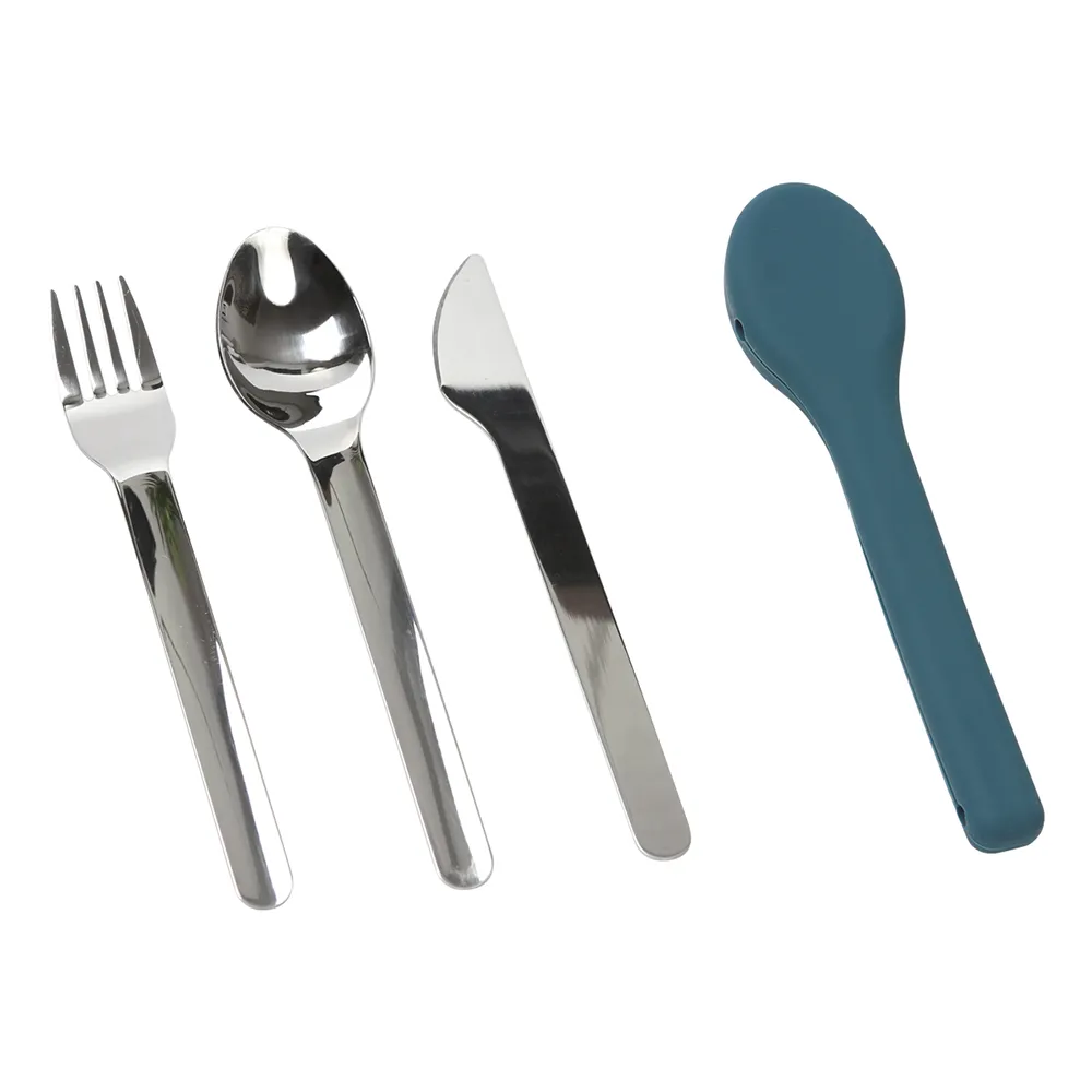 Juego de cubiertos fabricados en acero inoxidable con cubierta de silicón. Incluye cuchillo tenedor y cuchara. Incluye caja de cartón individual. Es ideal para traerlo siempre contigo y evitar usar cubiertos desechables.