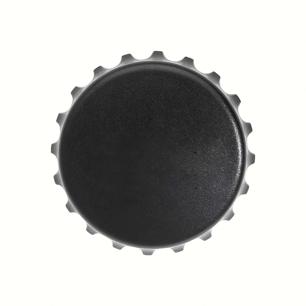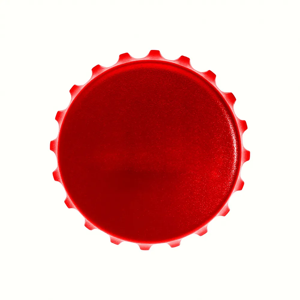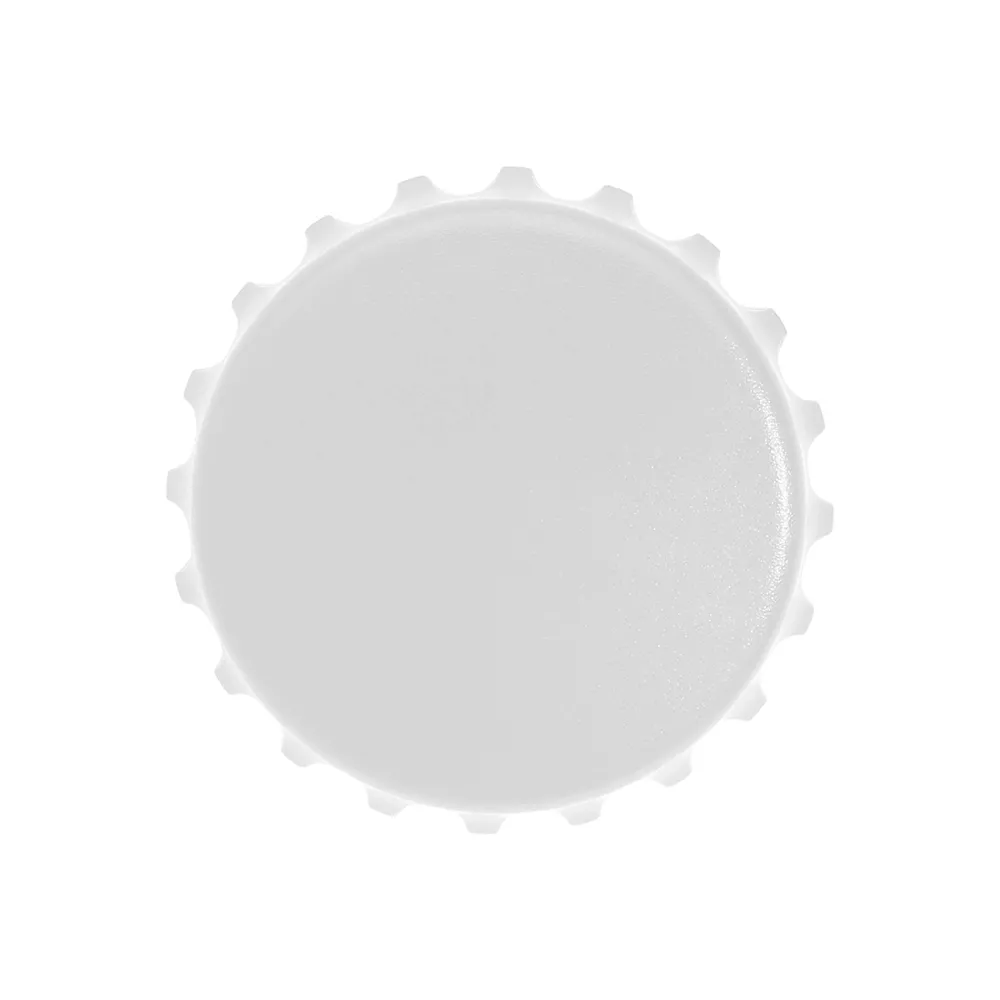 Destapador tipo ficha con doble imán y abre botellas de rosca.
