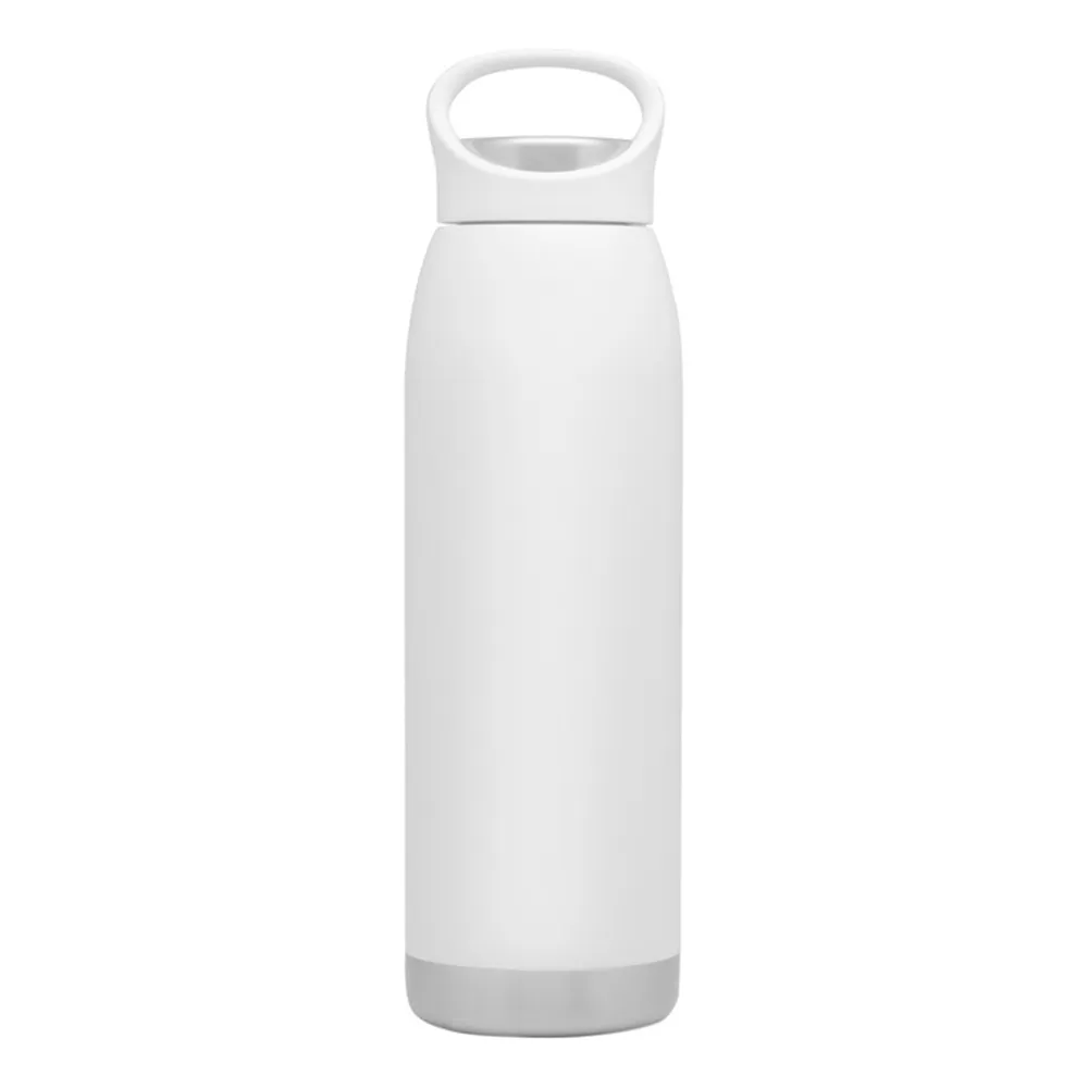 Botella doble pared, sellada al vacío. Interior en acero 304 y exterior en acero 201. Pintura en colores mate. Tapa combinada en plástico del mismo color de la botella y acero inoxidable 201. Mantiene hasta 12 hs la temperatura de las bebidas calientes y 24 hs de las bebidas frías. Presentación en caja de regalo.