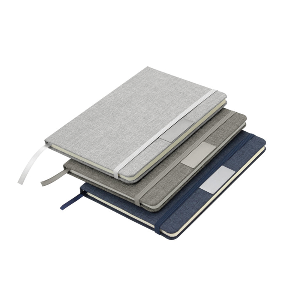 Libreta fabricada con cartones de leche, con detalle de bambú en la parte inferior, espiral metálico y banda elástica, cuenta con 70 hojas rayadas de papel de 80 g. fabricadas con cartones de leche.