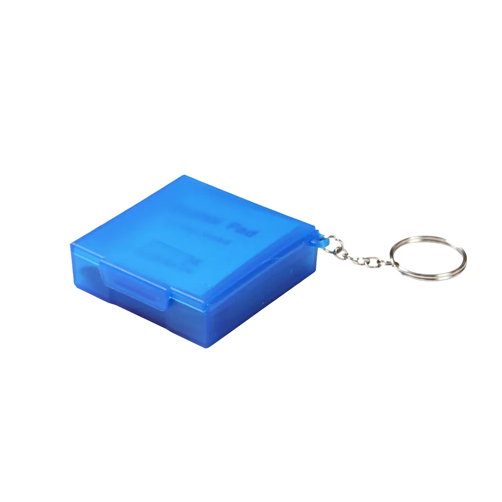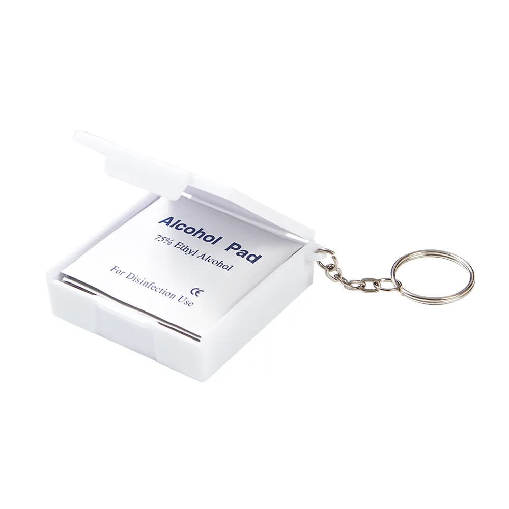 Llavero contenedor fabricado en plástico PP, con 10 pads de non woven, con alcohol al 75%.