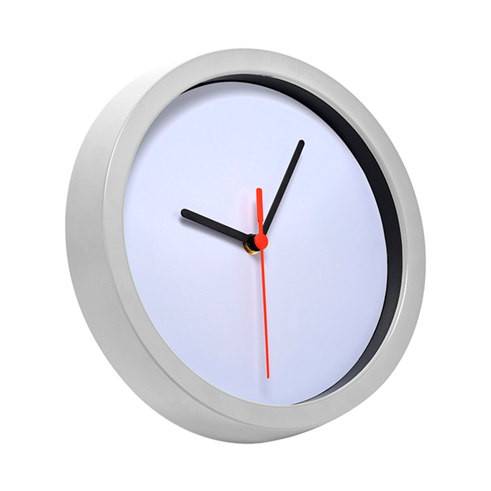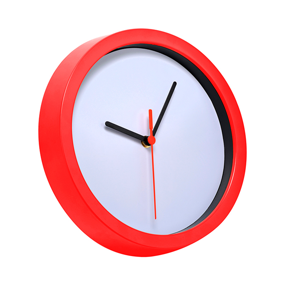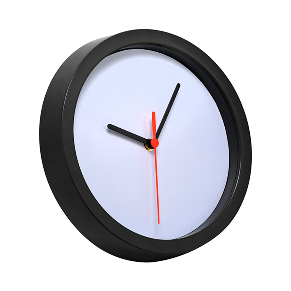Reloj de pared con arillo de plástico y protección de cristal. Usa 1 batería AA incluida.