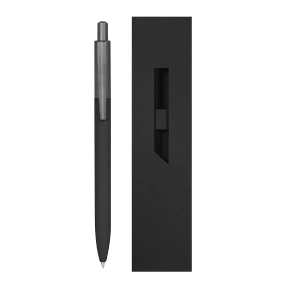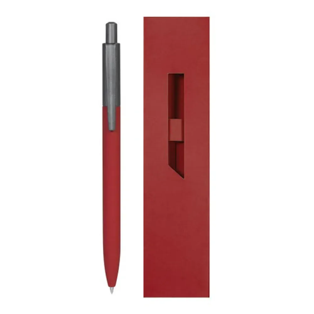 Bolígrafo metálico con terminado mate. Mecanismo pulsador. Incluye estuche de color a tono con el bolígrafo.