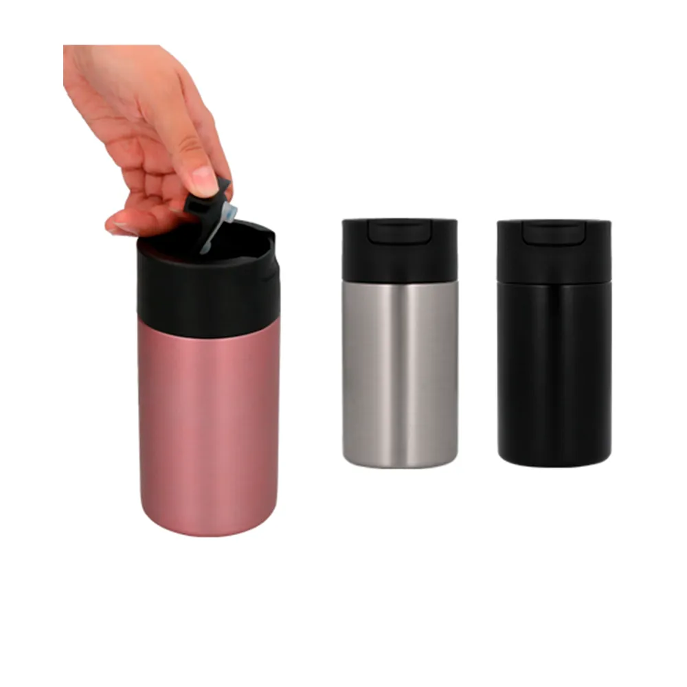 Termo sublimable con doble pared de acero inoxidable, acabado glitter, tapa de plástico a presión con boquilla deslizable y popote metálico.