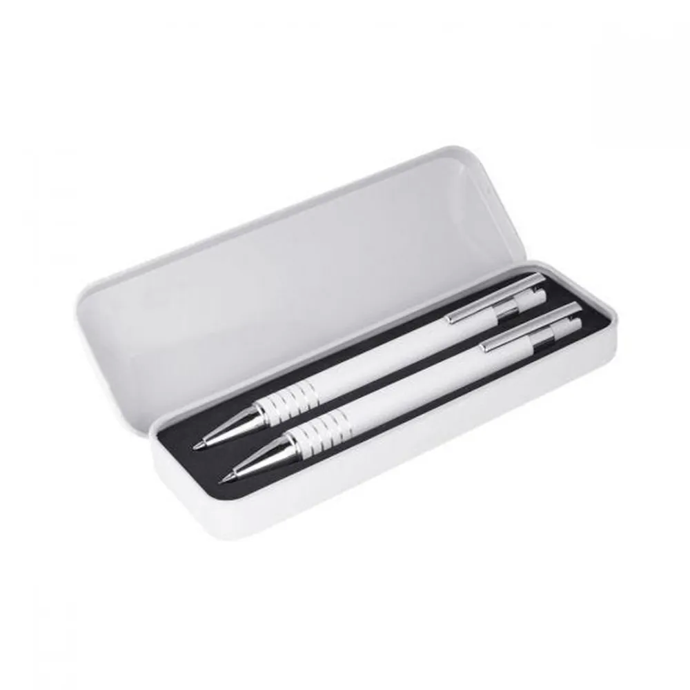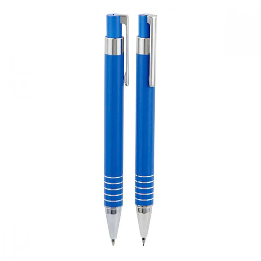 Bolígrafo y lapicera 0.5 mm. Mecanismo pulsador. Incluye estuche metálico.
