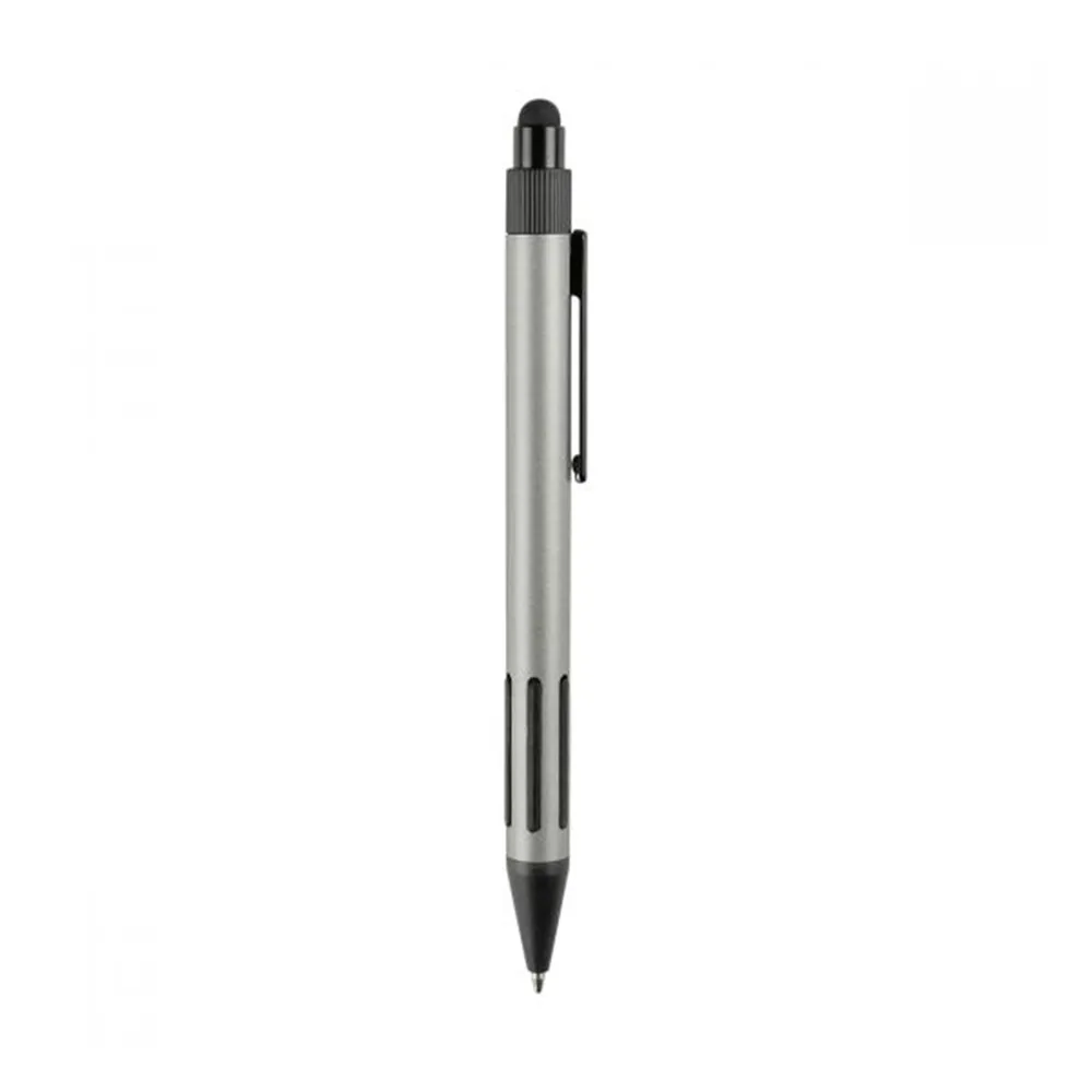 Bolígrafo con touch screen y grip antiderrapante. Mecanismo pulsador. Incluye funda.