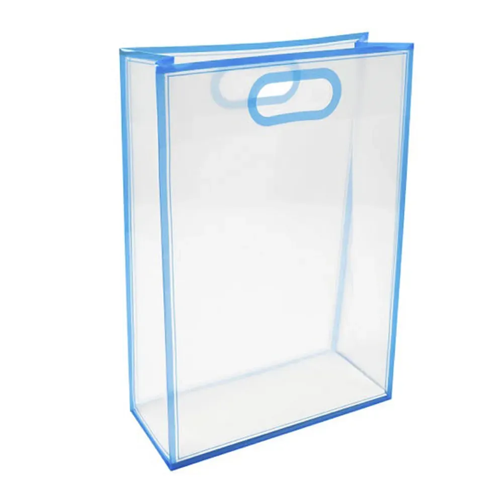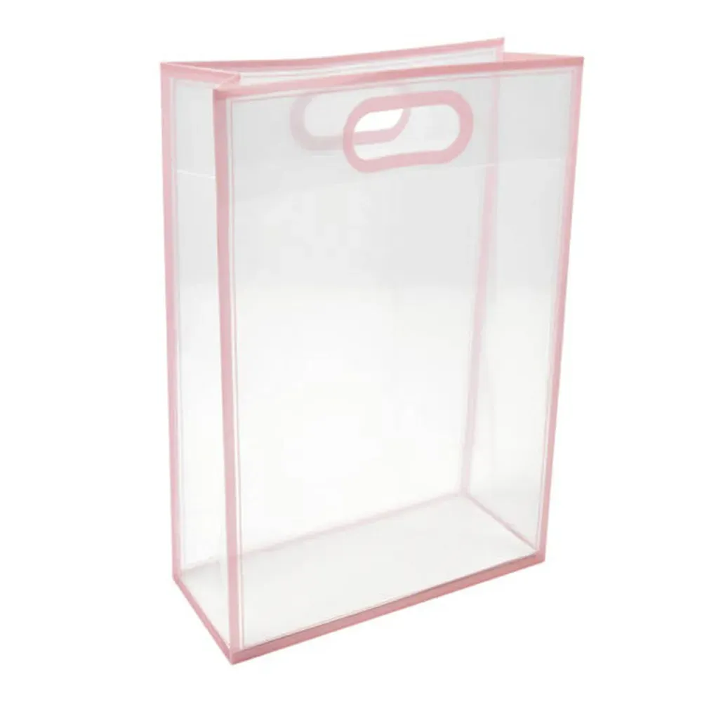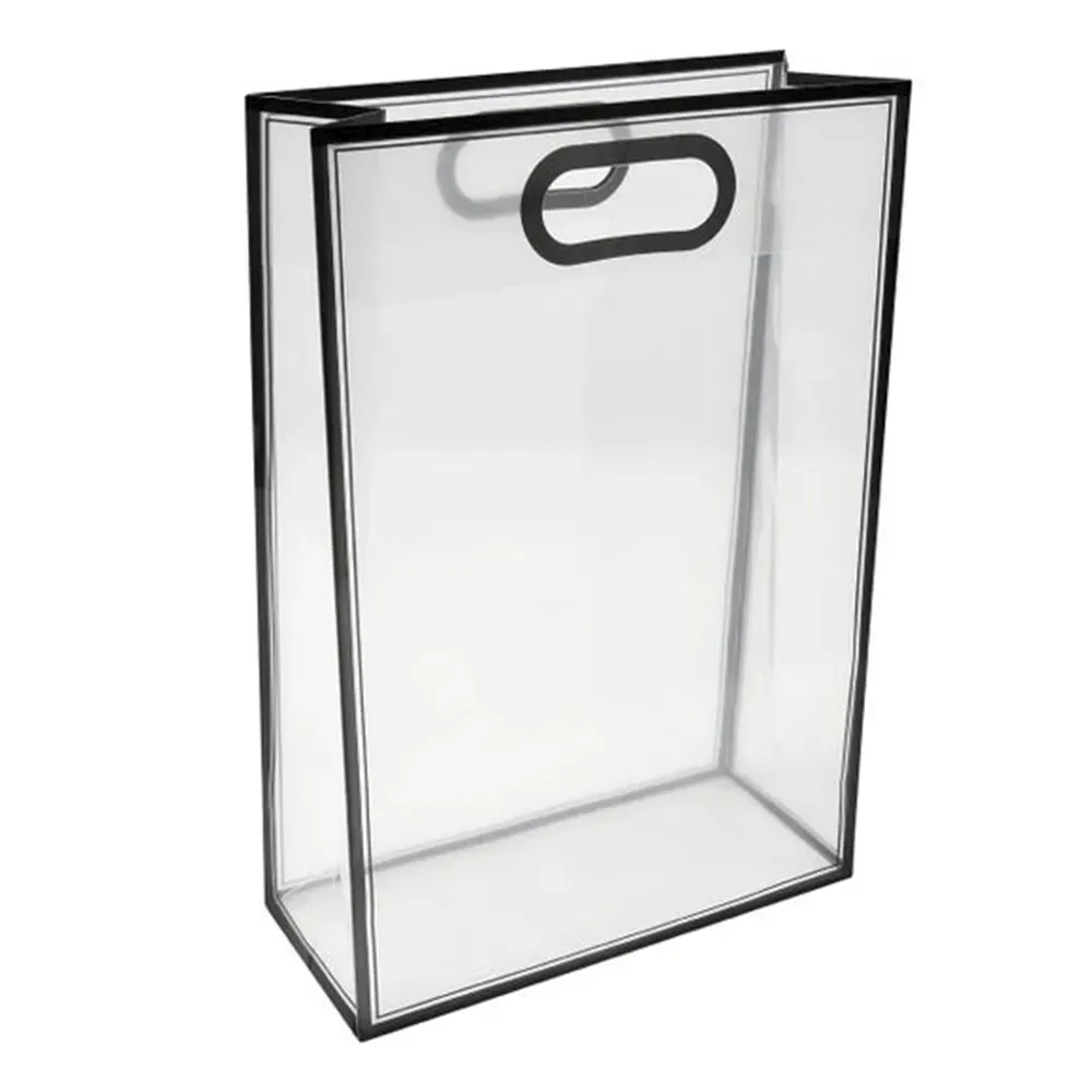 Bolsa de PVC con fuelle. Su diseño transparente con bordes de color la hace ideal para crear tus propios sets de regalo. Su asa está diseñada para llevarla cómodamente con una sola mano. Perfecta para cualquier ocasión especial.