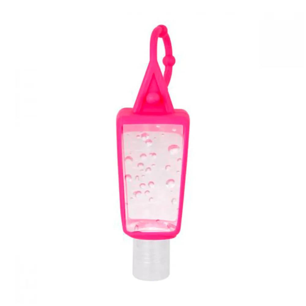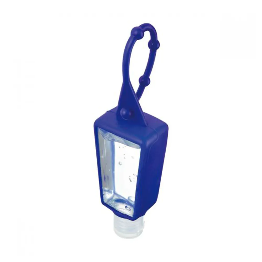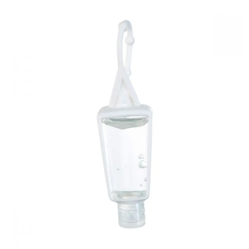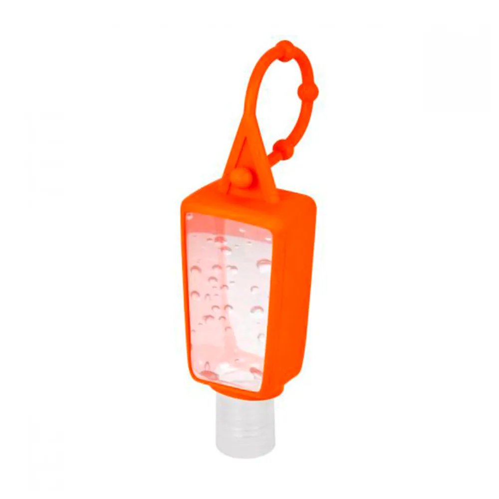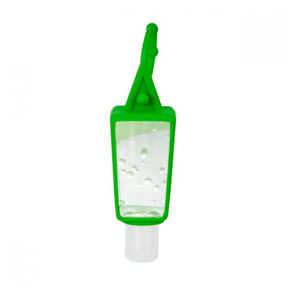 Gel sanitizante portátil y recargable. Incluye sujetador de silicón. Alcohol al 55%.