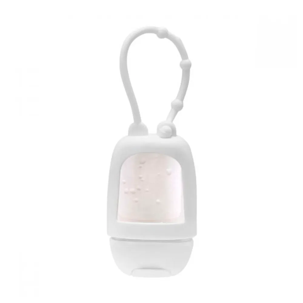 Gel sanitizante portátil y recargable. Incluye sujetador de silicón. Alcohol al 55%.