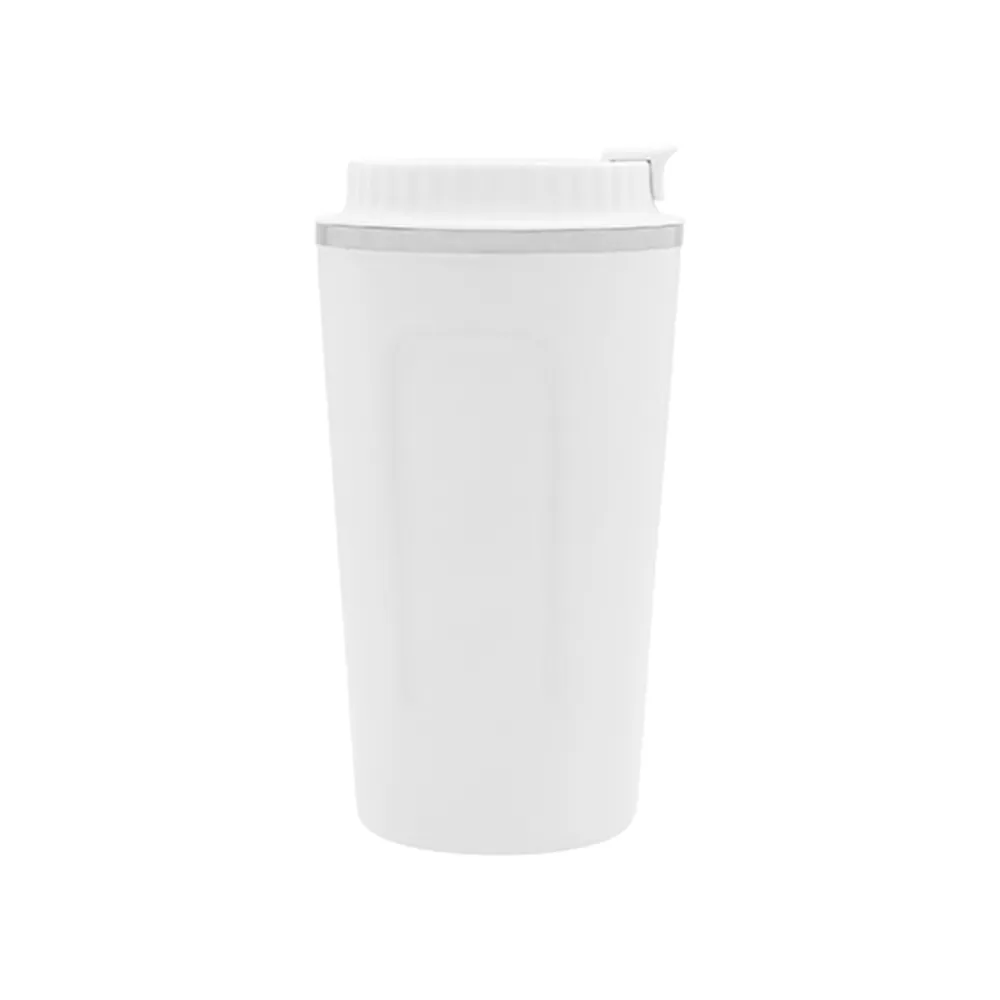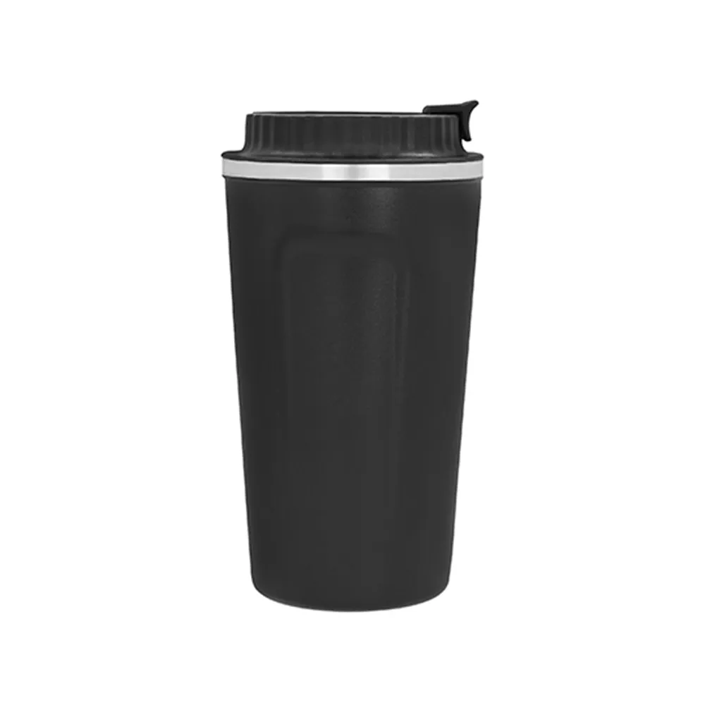 Termo con doble pared de acero inoxidable, con tapa plástica enroscable y boquilla de seguridad.