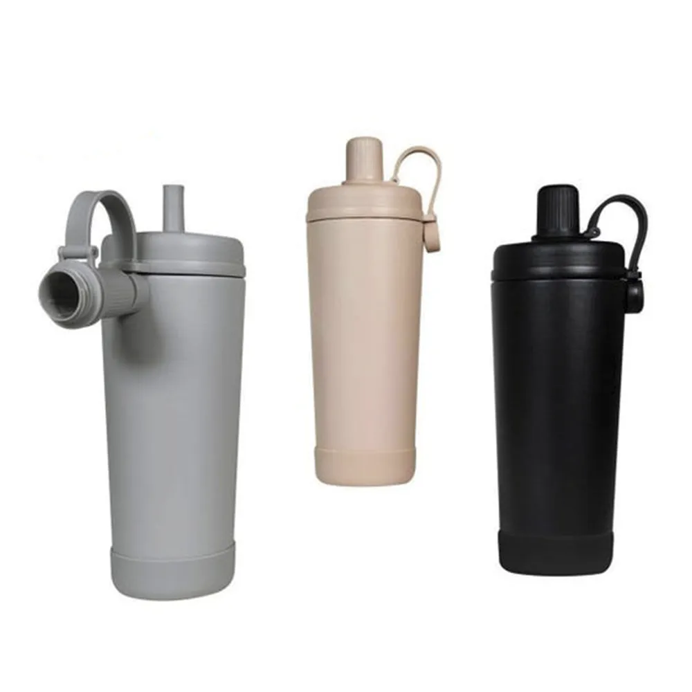 Termo con doble pared de acero inoxidable y tapa metálica enroscable.