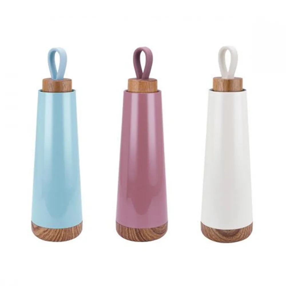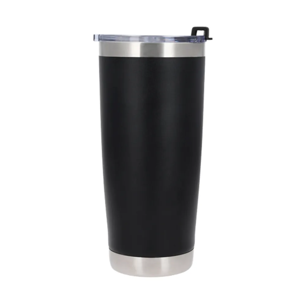 Termo insulado al vacío con doble pared de acero inoxidable y acabado rugoso. Incluye tapa de cierre a presión.