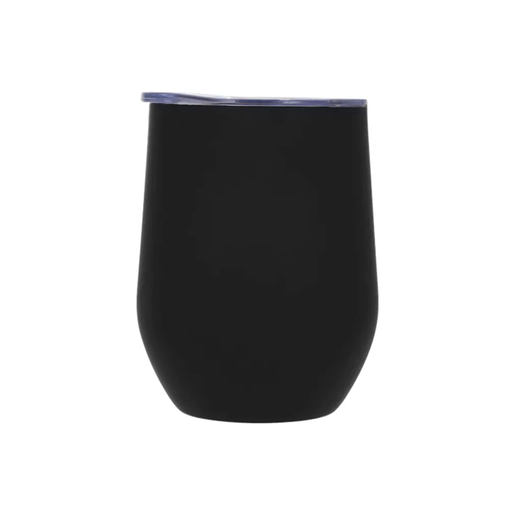 Termo con doble pared de acero inoxidable y acabado rubber. Incluye tapa transparente de cierre a presión.