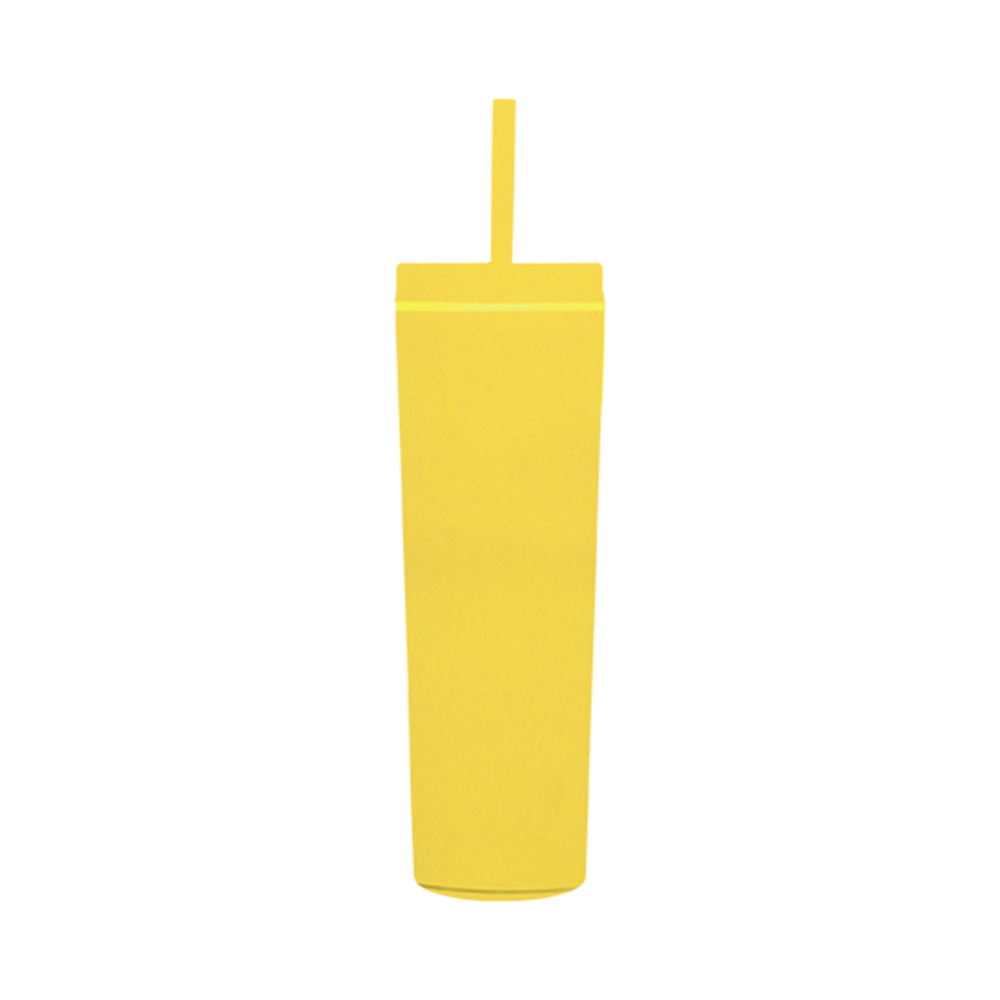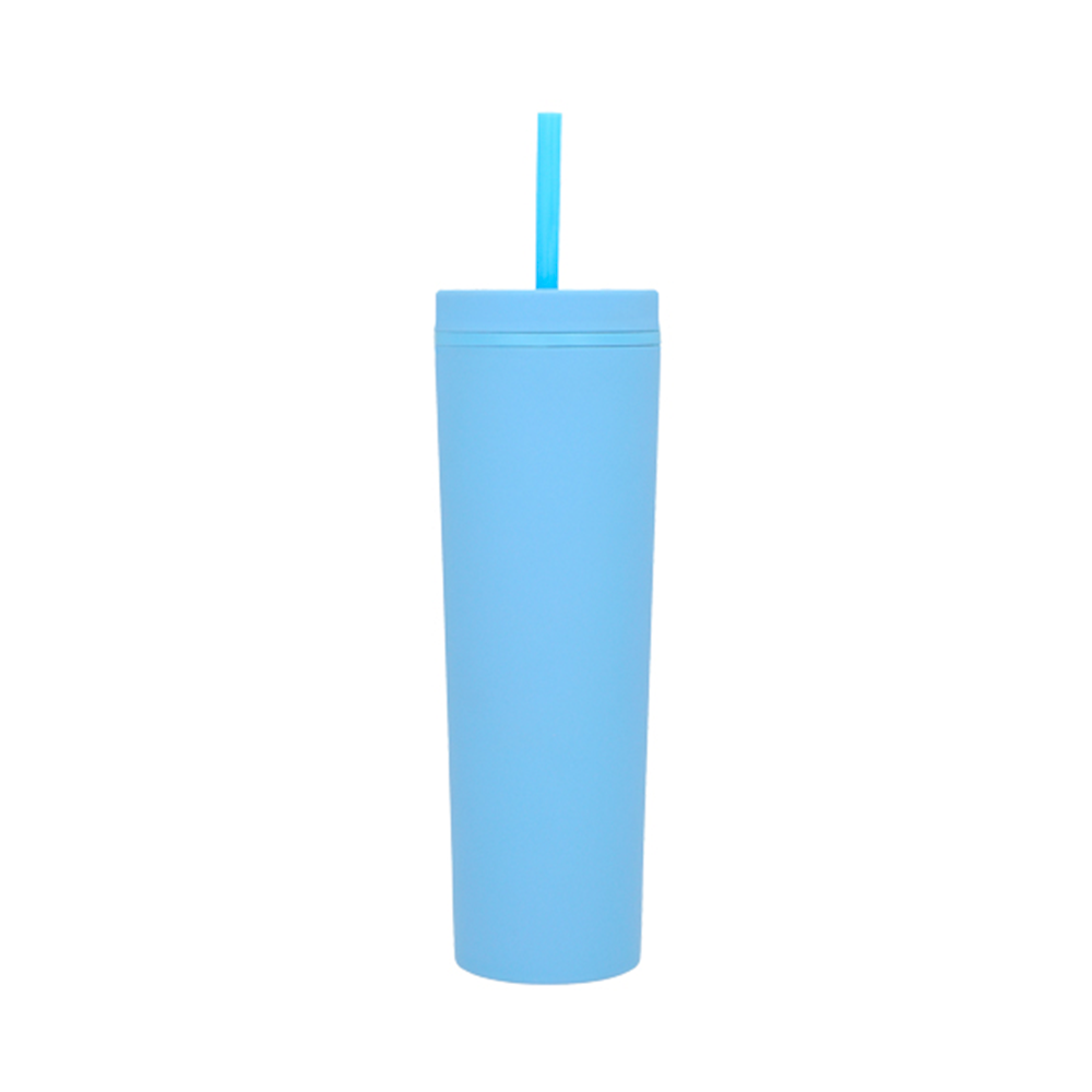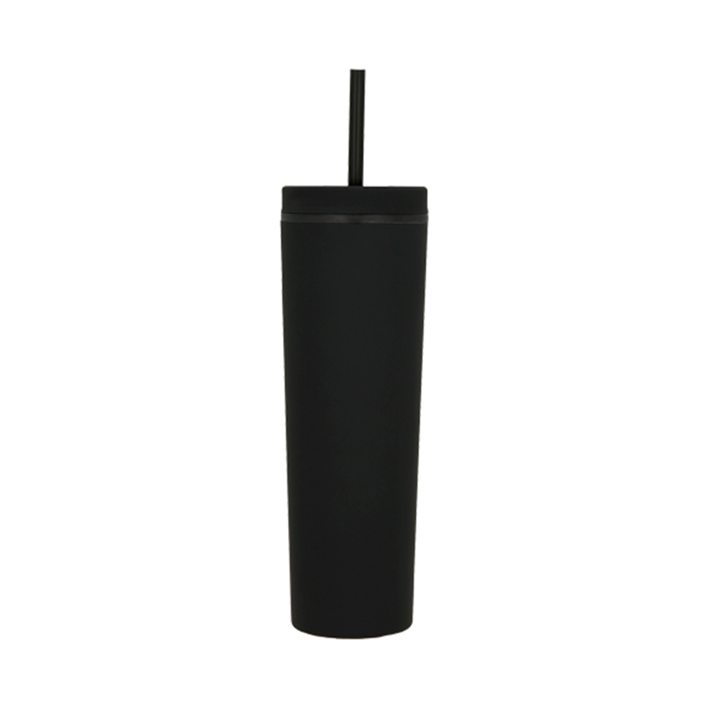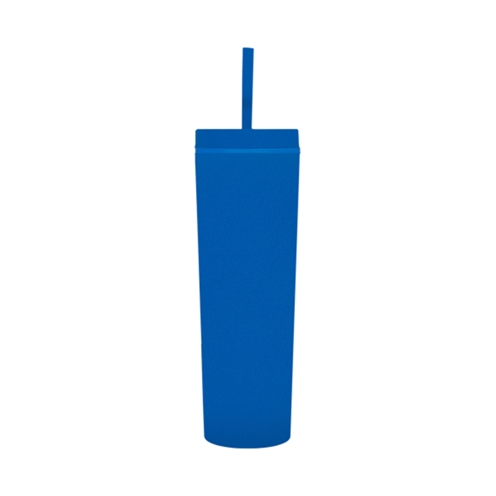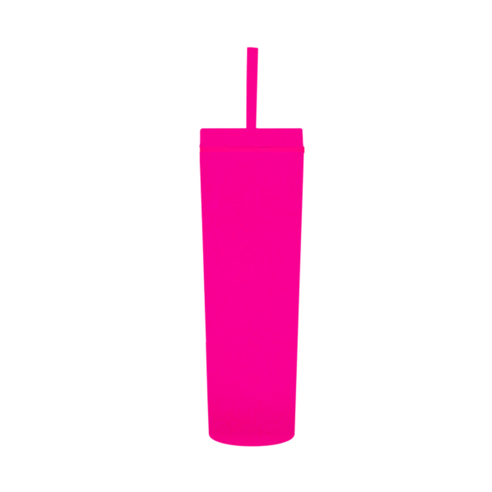 Termo de plástico con doble pared, tapa enroscable y acabado rubber. Incluye popote de plástico.