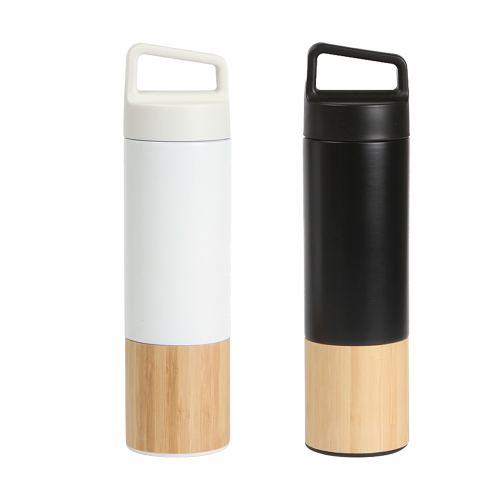 Termo de acero inoxidable con doble pared que brilla en la oscuridad con tapa de cierre a presión transparente.