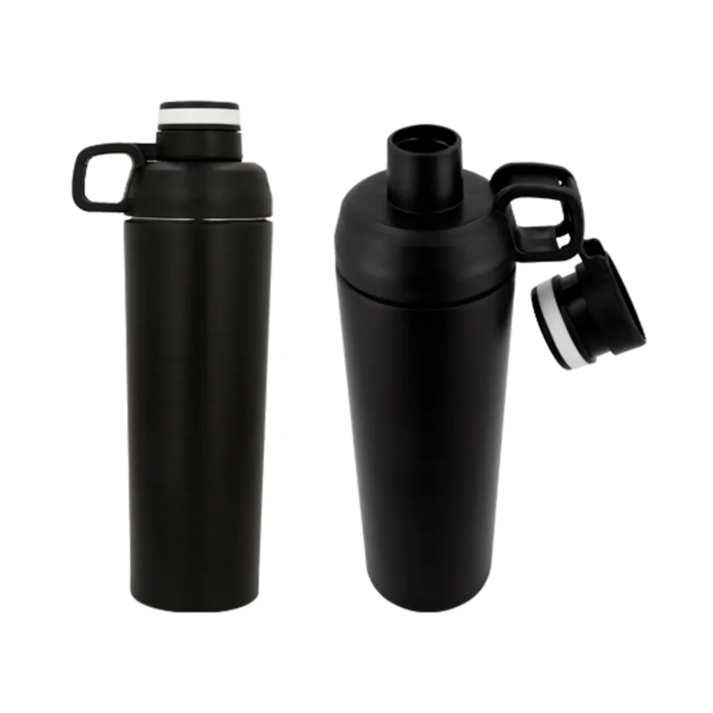 Termo de doble pared de plástico con acabado wheat straw y tapa enroscable.
