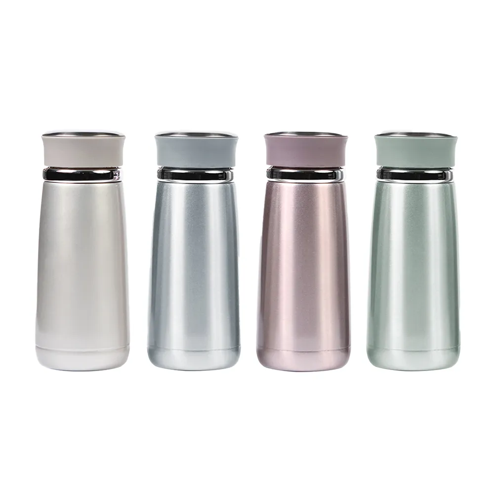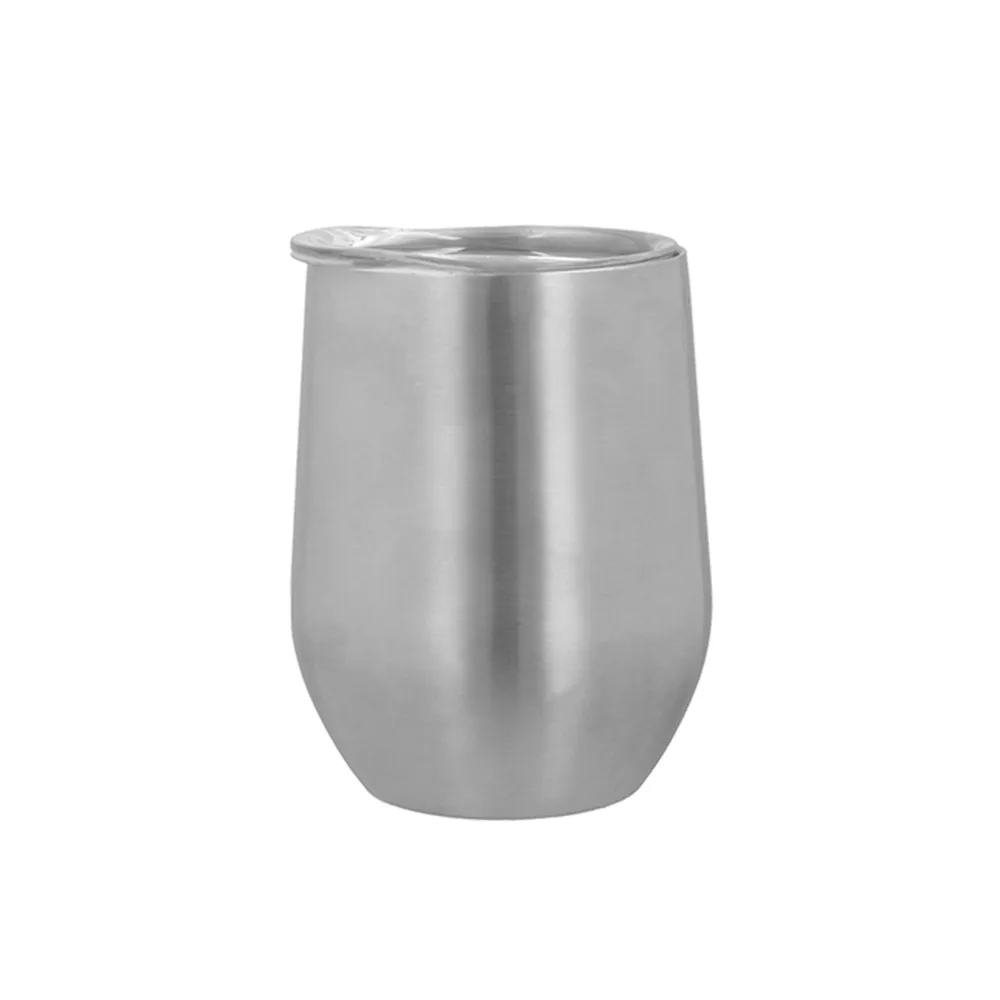 Termo de acero inoxidable de doble pared con tapa de cierre a presión transparente.