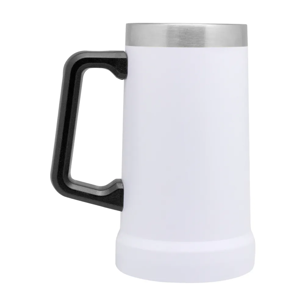 Jarro cervecero doble pared, sellado al vacío. Interior en acero 304 y exterior en acero 201. Mango Plástico. Pintura Powder coat (pintura más duradera y resistente a la corrosión y el paso del tiempo). Presentación en caja de regalo.